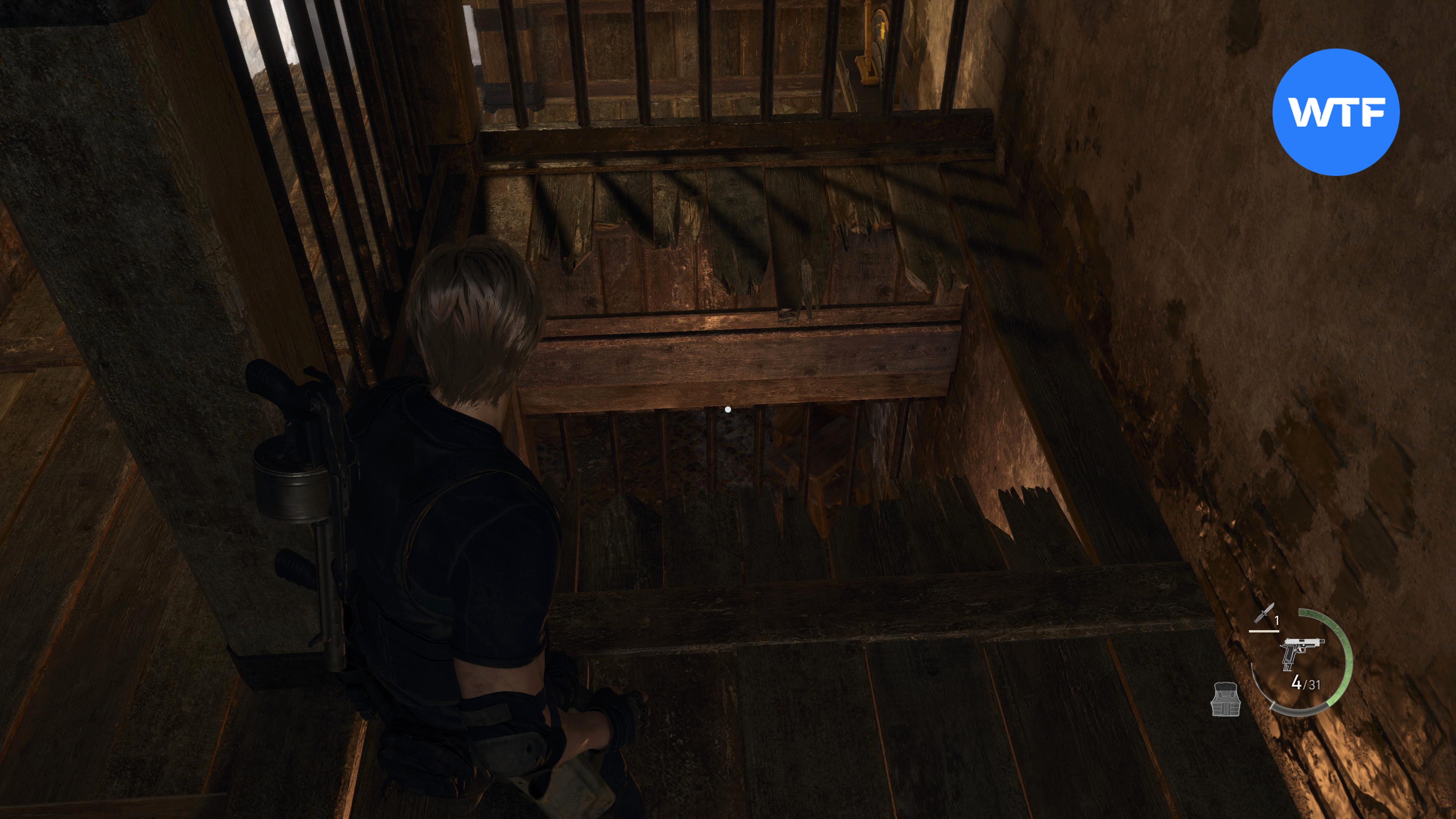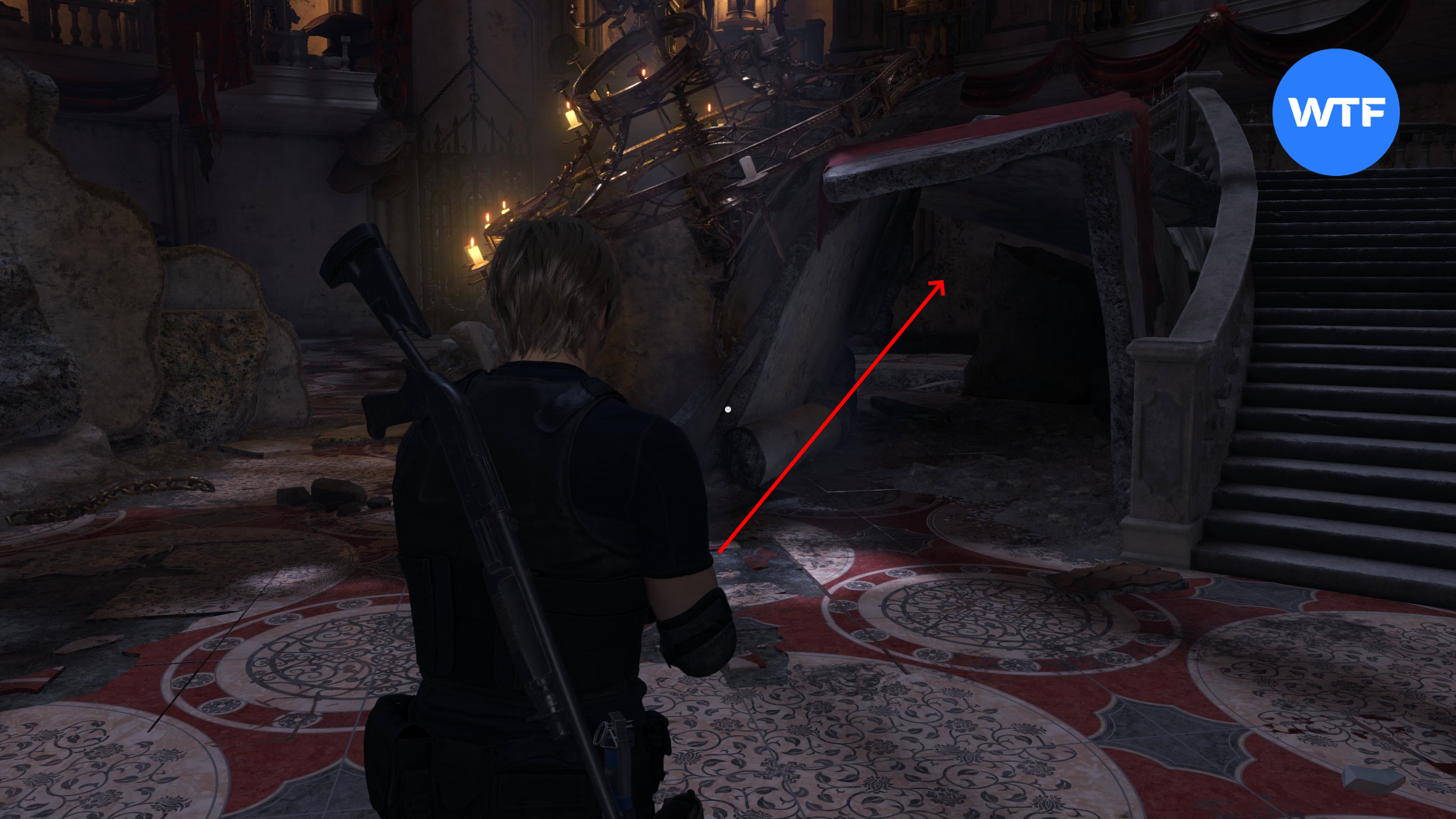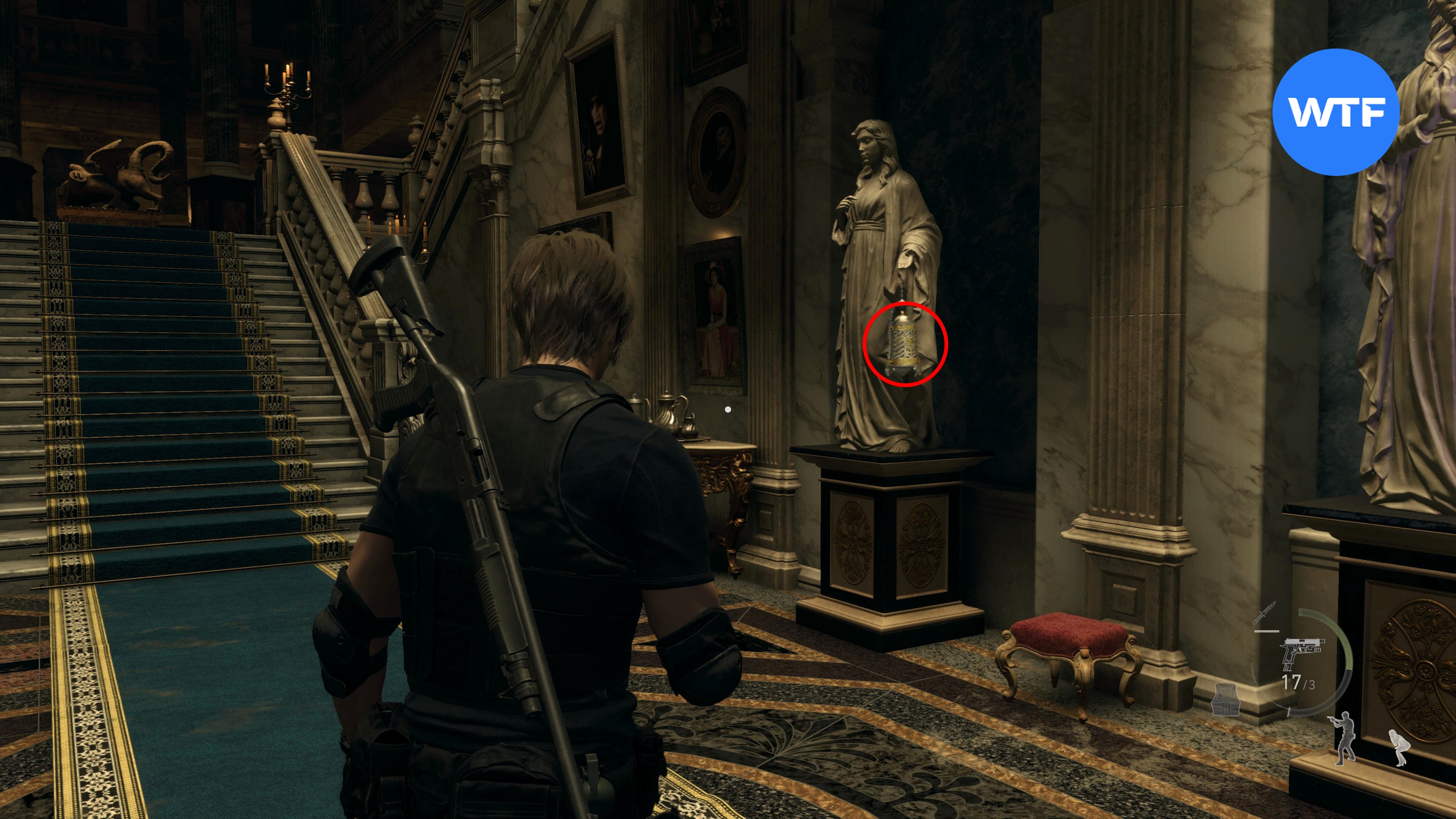Выйдя из комнаты, в которой началась глава, подсадите Эшли, чтобы она спустила вам лестницу. Поднимитесь наверх и стреляйте в колокольчик под потолком, чтобы получить этот самоцвет.