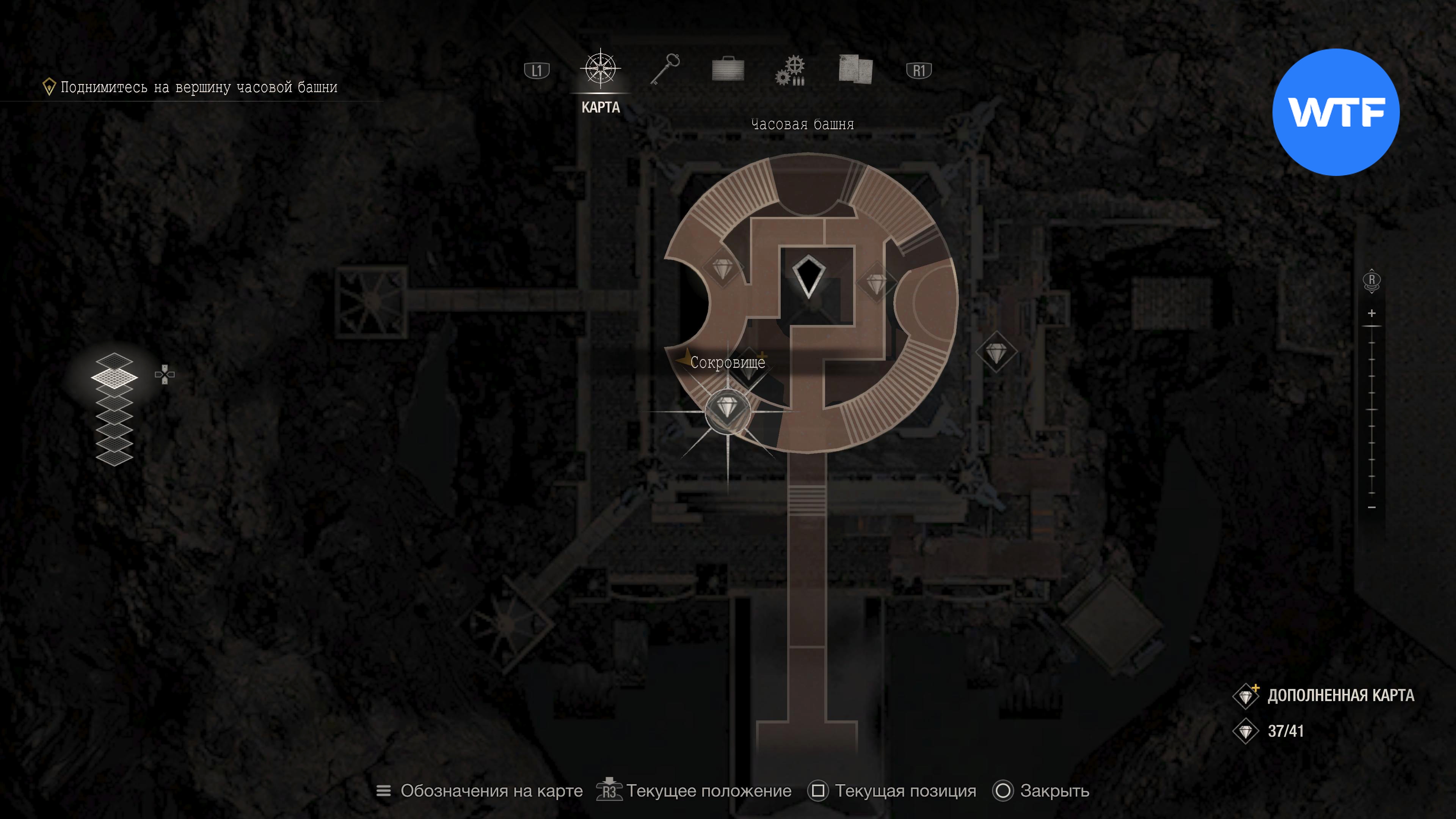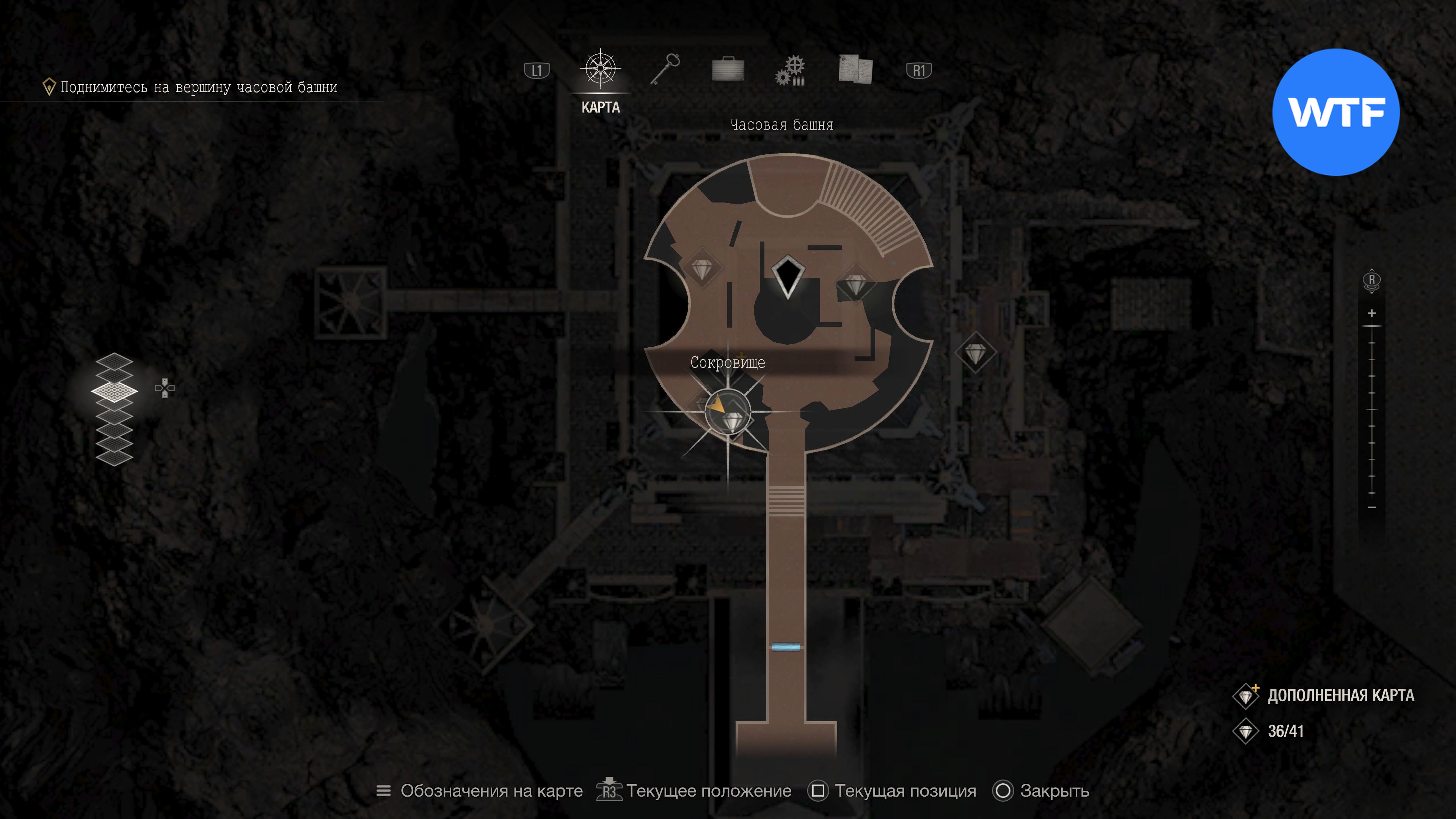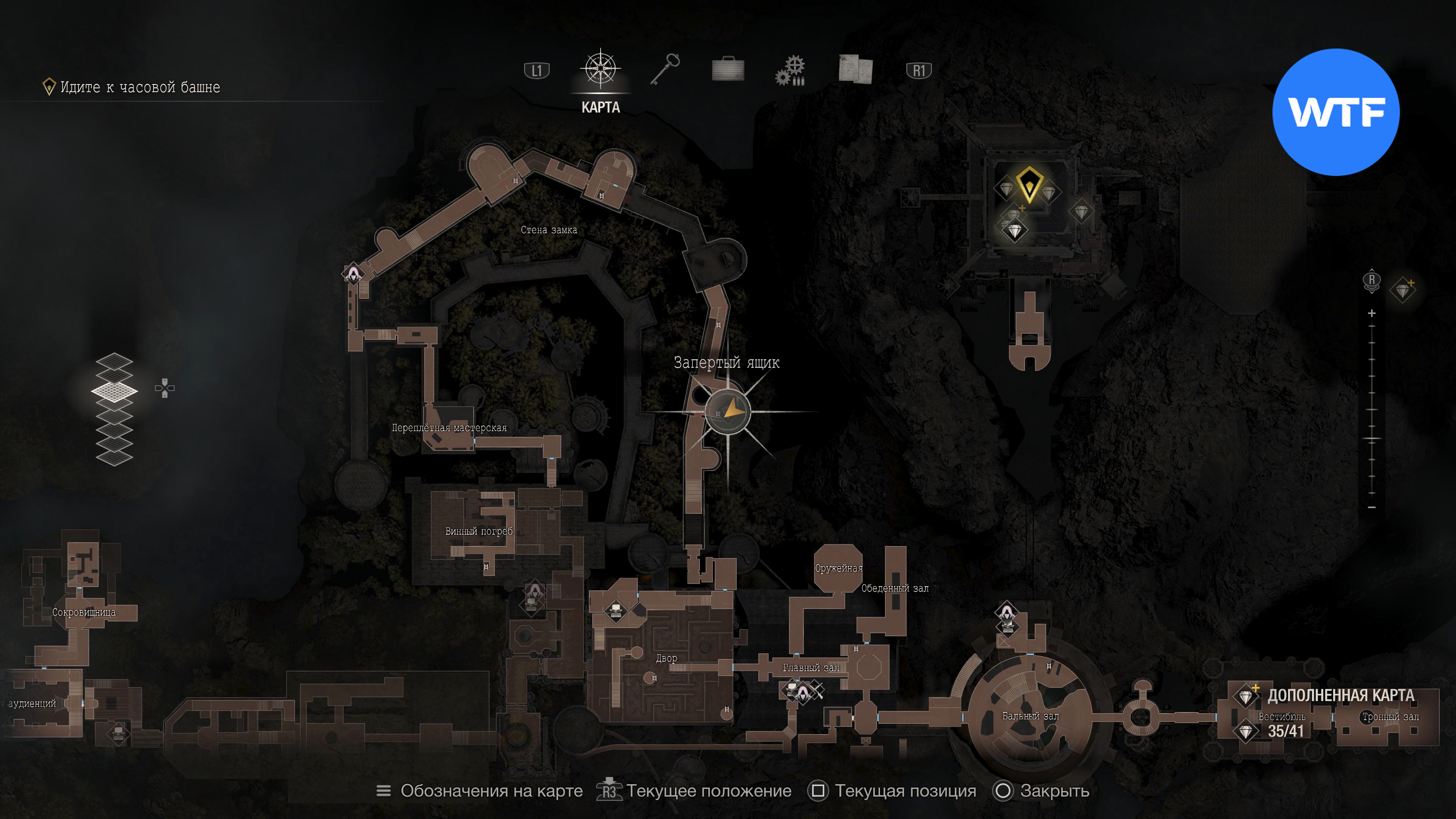 Сразу после начала главы поднимитесь на лифте и заберите маленький ключ со столика возле золотой вагонетки. Он нужен, чтобы открыть запертый ящик в одной и башен.