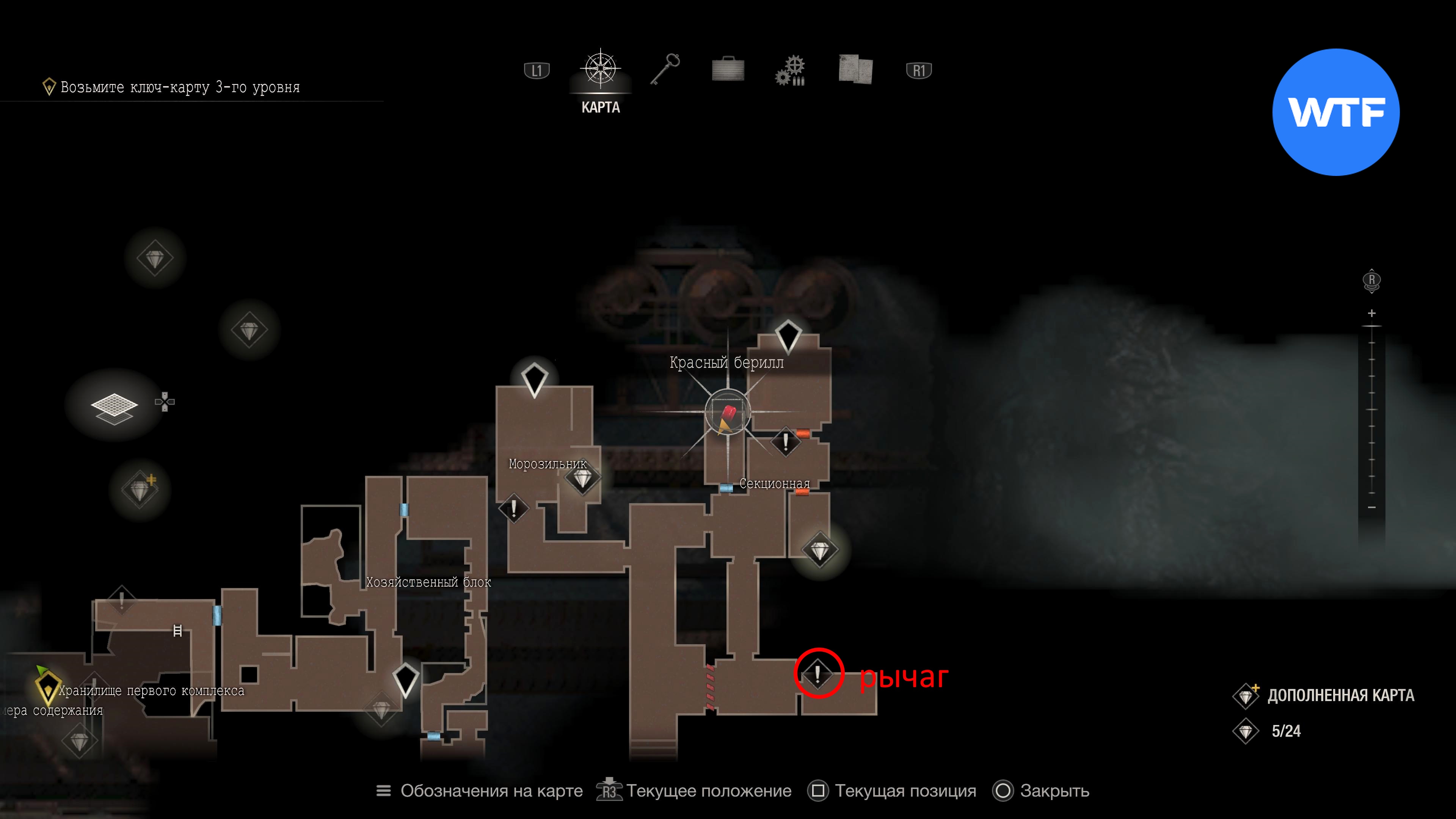 Продолжайте двигаться вперед, пока не доберетесь до комнаты к югу от Секционной. Используйте рычаг, чтобы переключить питание в правую часть здания, а после этого вернитесь к Секционной. Зайдите в небольшую комнату на северо-западе и разбейте витрину шкафа, чтобы забрать оттуда красный берилл.