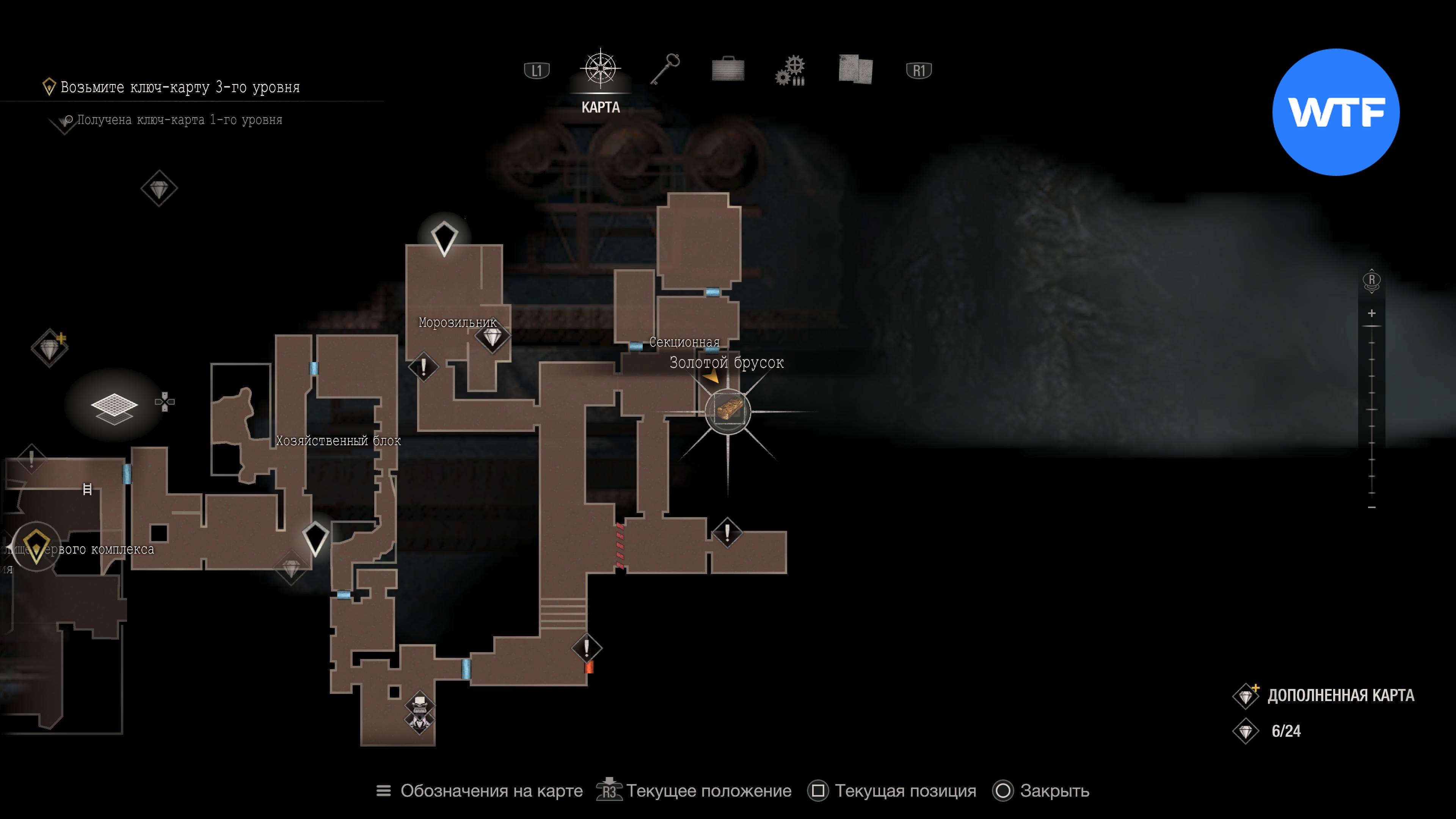 Теперь пройдите через дверь на юго-востоке Секционной. Внутри разбейте витрину еще одного шкафа и заберите золотой брусок. Не забудьте также прихватить ключ-карту 1 уровня в комнате к северу от Секционной.