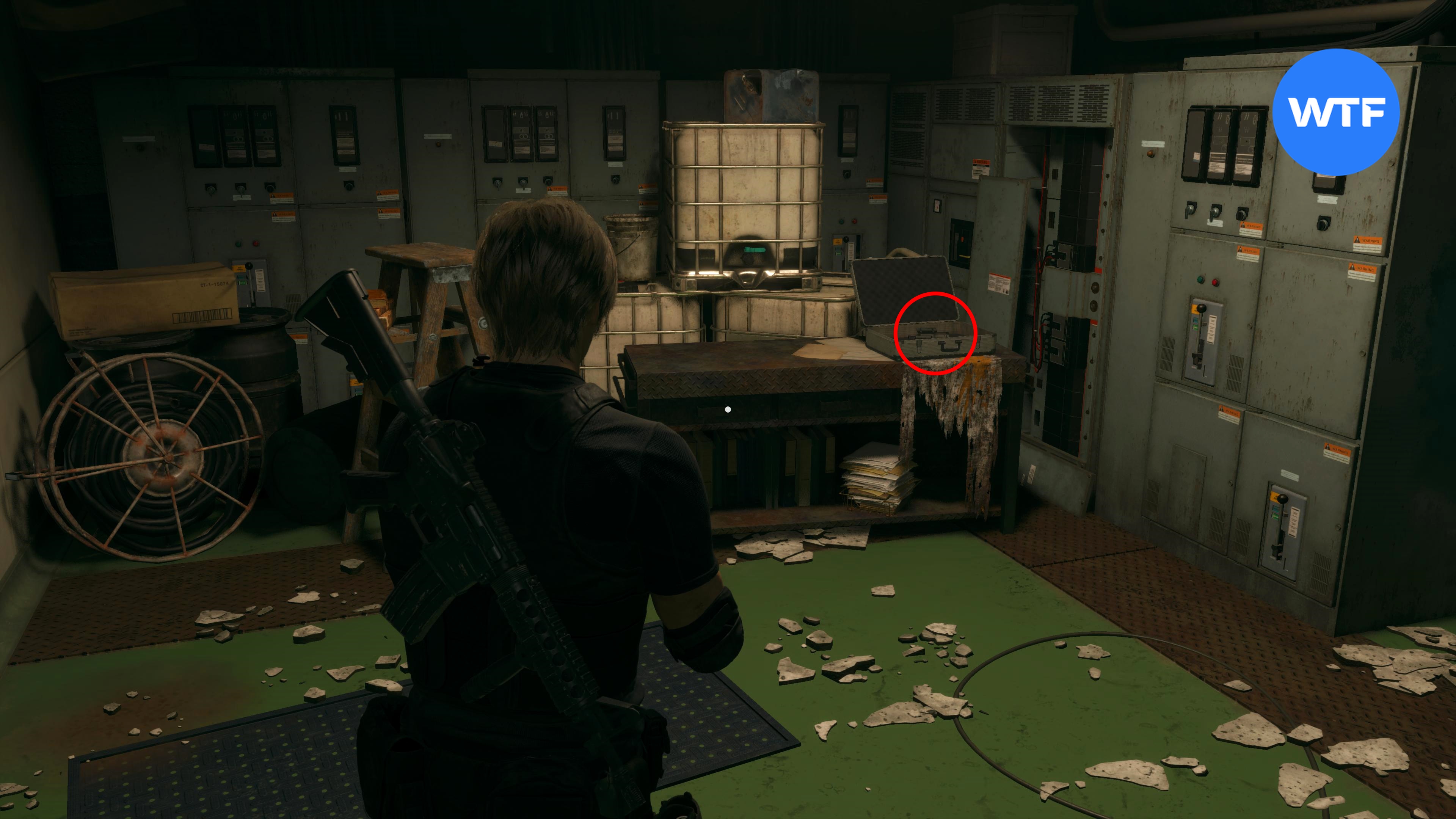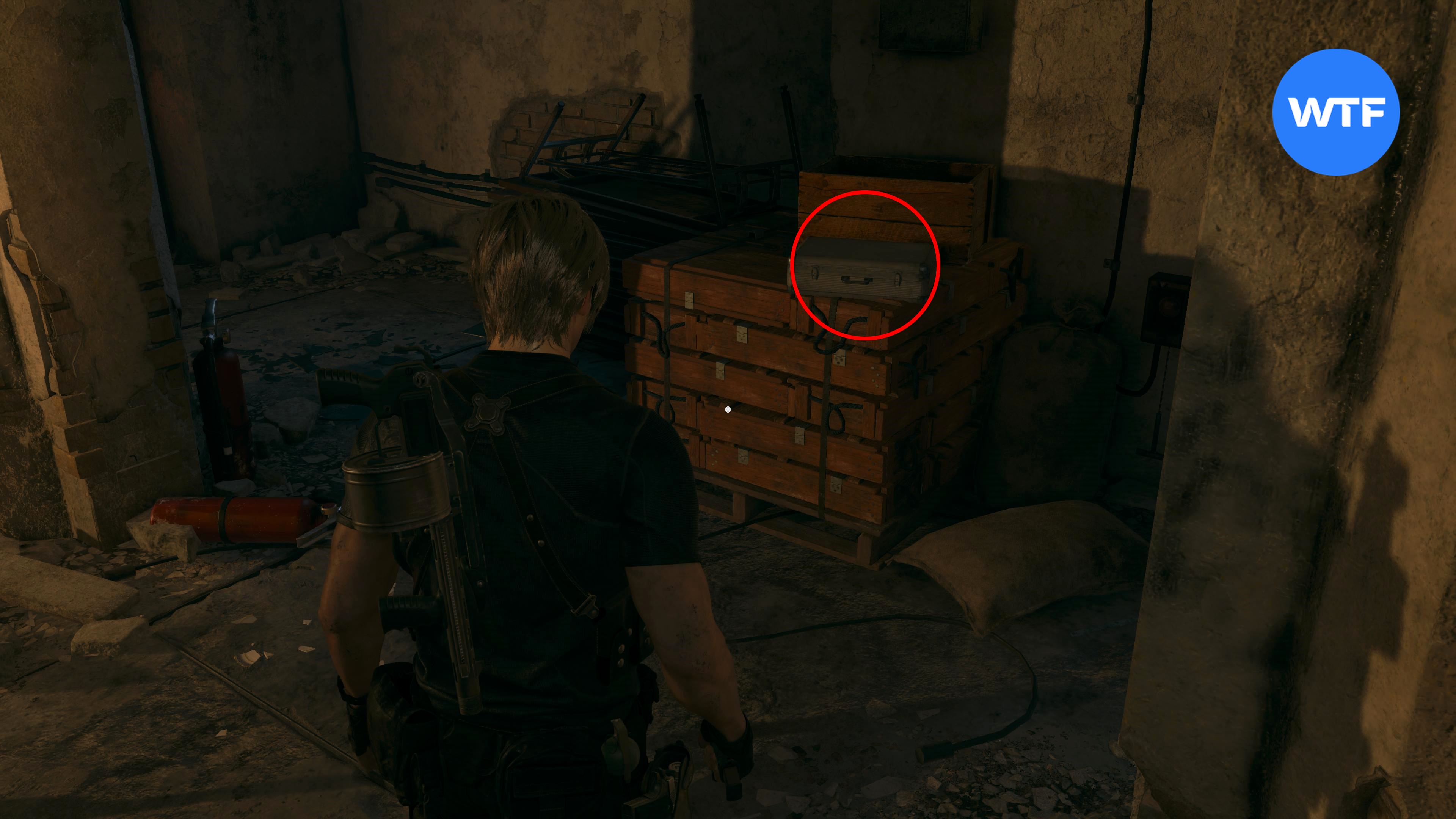 Вернитесь на развилку и теперь идите по проходу налево. Сразу после входа в здание лаборатории чемоданчик с этим сокровищем будет лежать на шкафу справа.