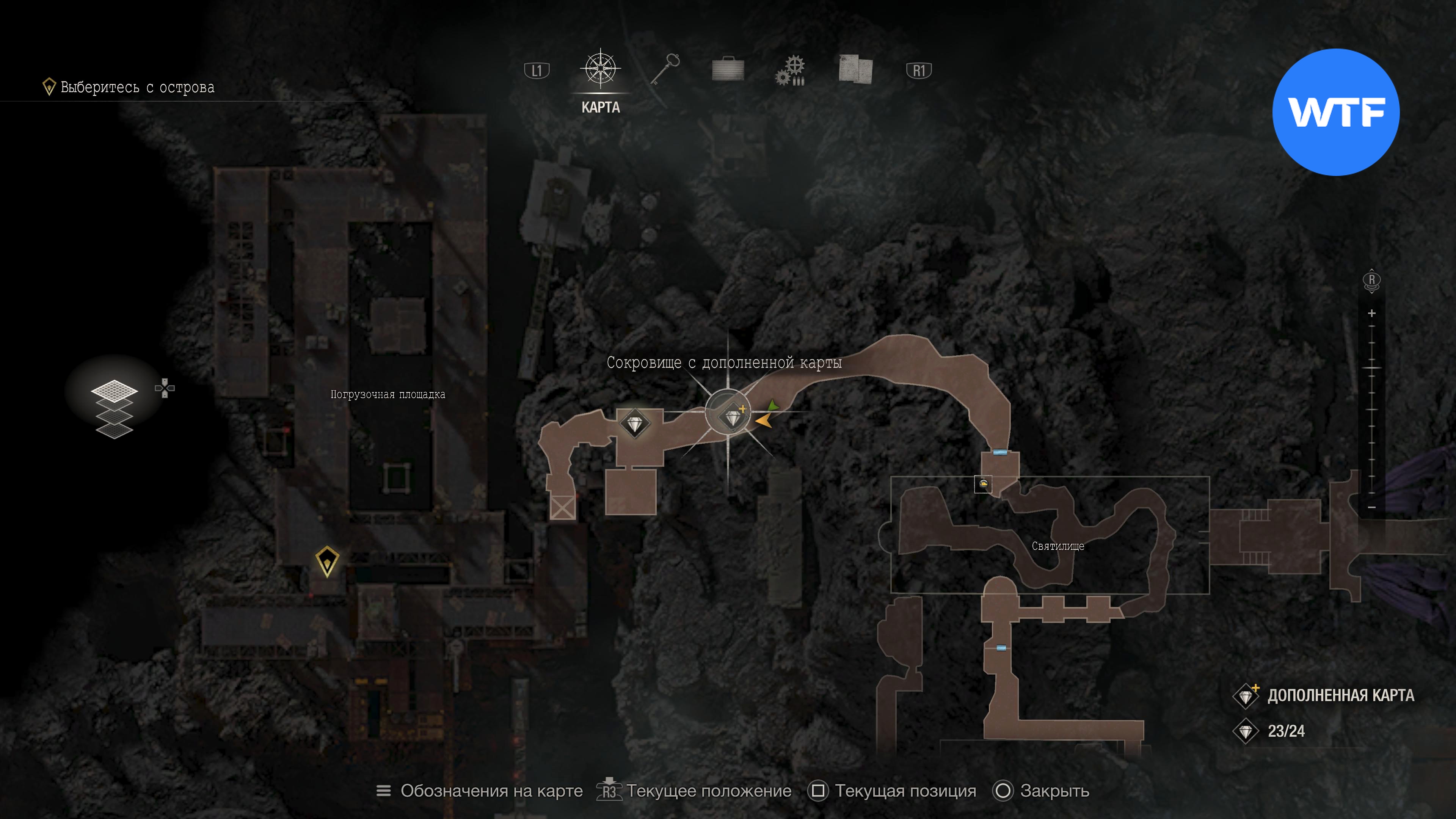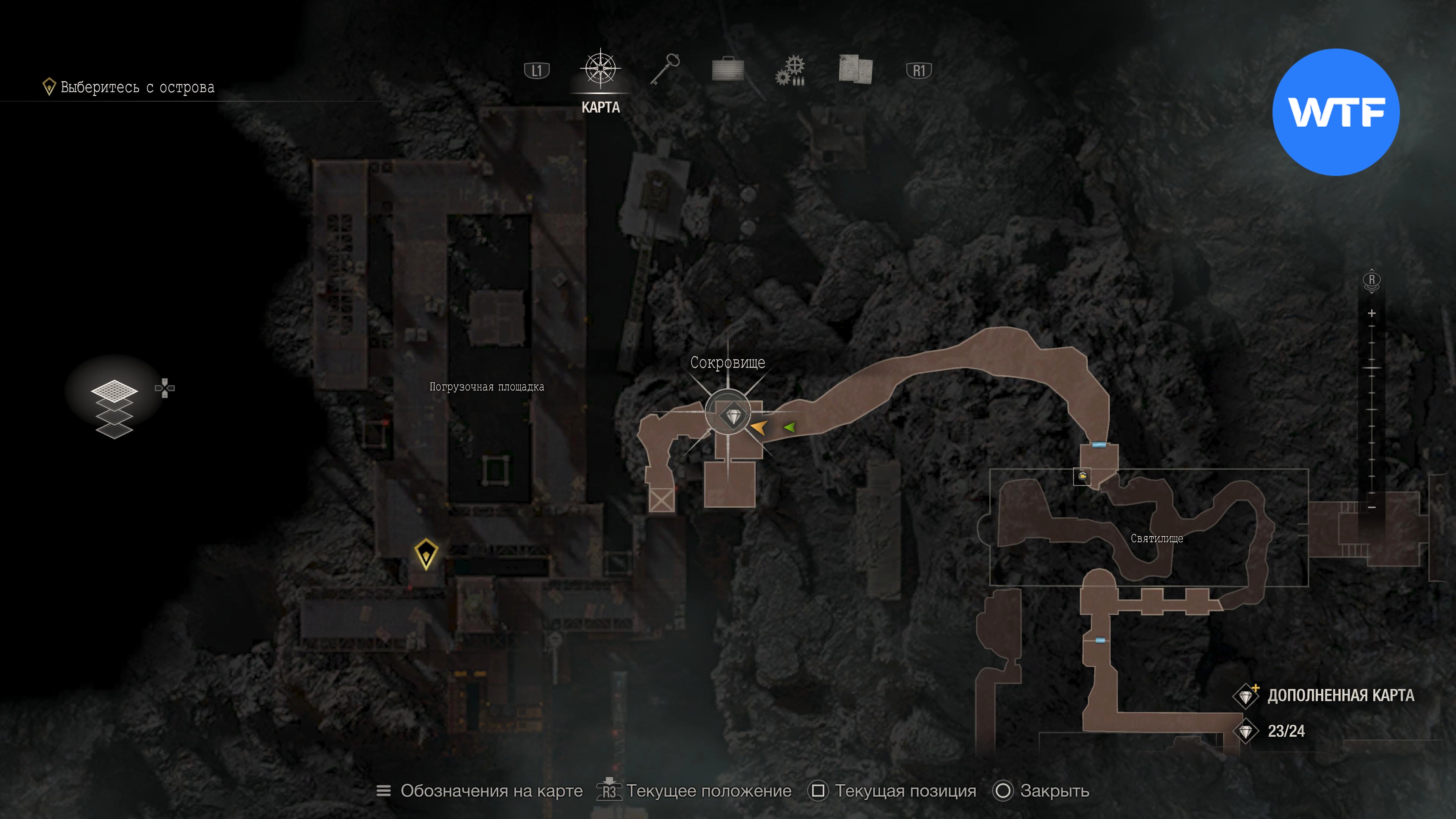 Всего по карте сокровищ острова можно найти 24 сокровища. Собрав их все за одно прохождение, вы получите достижение «Расхититель». Если вас убьют, сокровище нужно подобрать заново.