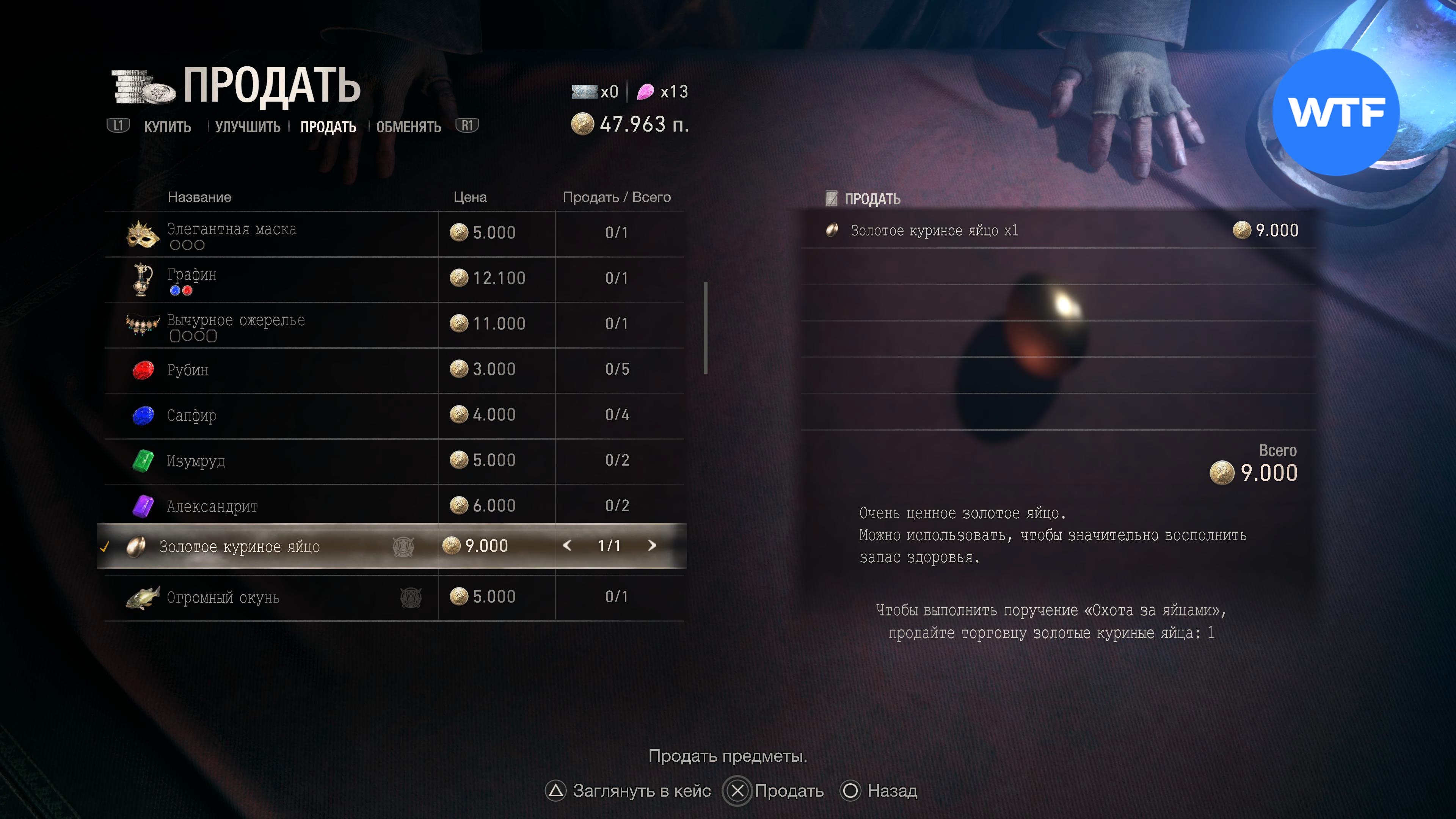 Чтобы завершить поручение «Охота за яйцами», отправляйтесь к ближайшему торговцу в южной части озера и продайте ему золотое куриное яйцо за 9 000 песетов. После этого вы получите 3 шпинели в награду.