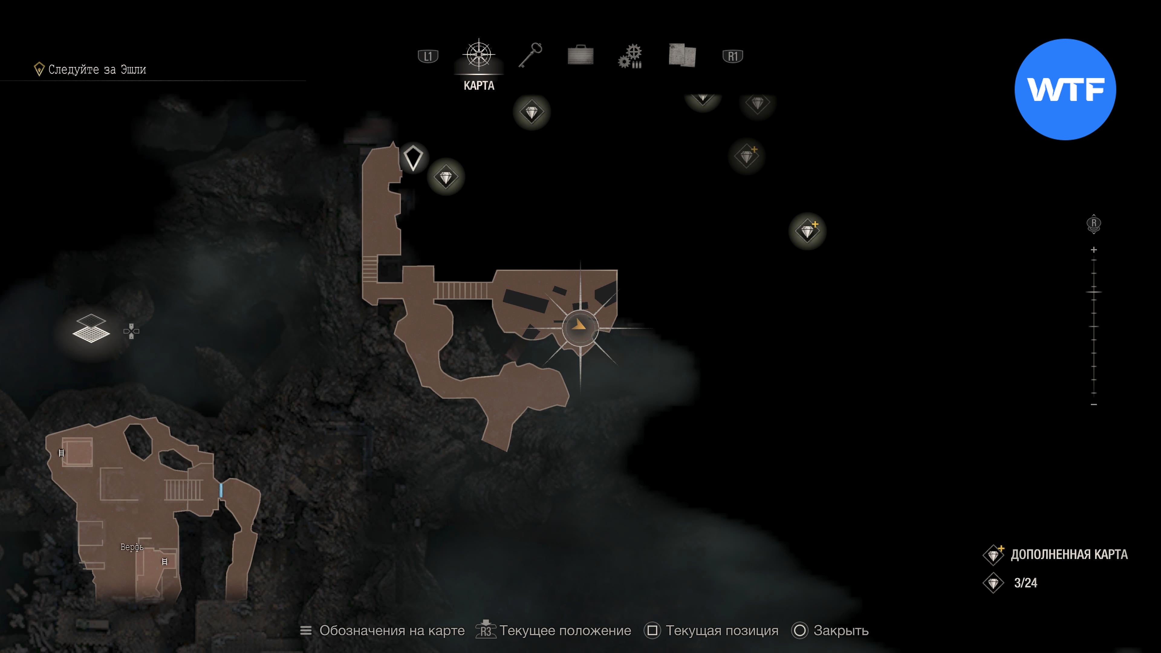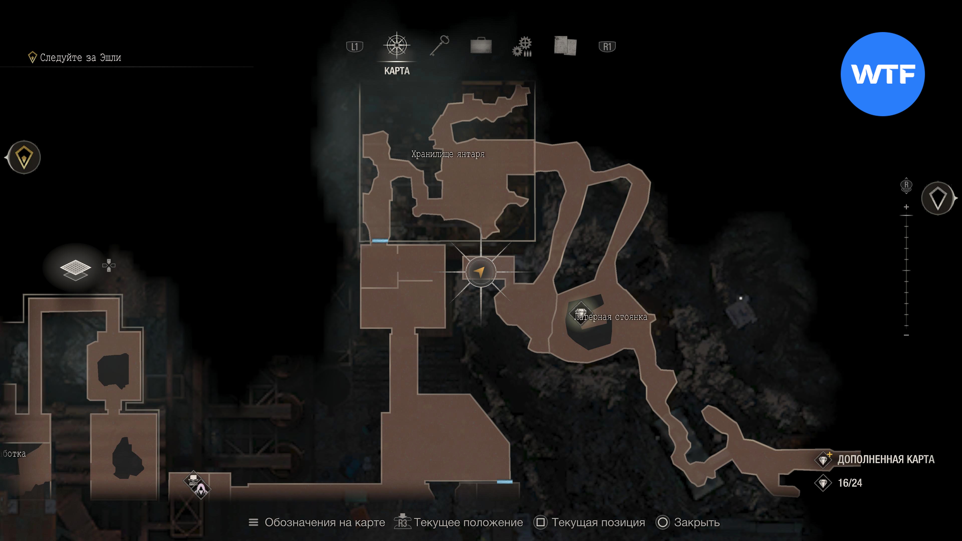 В четырнадцатой главе двигайтесь по сюжету пока ближе к концу снова не разделитесь с Эшли в Хранилище янтаря. После этого пройдите через большие ворота и идите по туннелю на юг. Зайдите в небольшое здание справа и увидите эту куклу, стоящую на шкафчиках (см. скриншот 2).