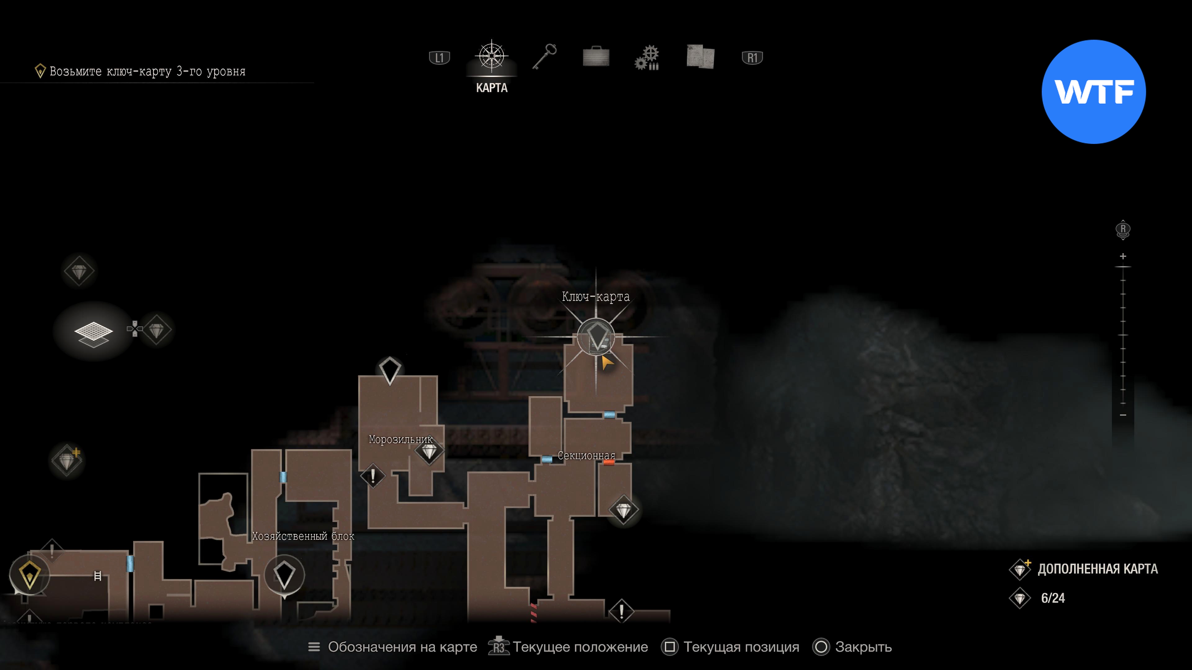 В первую очередь доберитесь до комнаты к югу от Секционной, показанной на карте ниже. Там вам нужно использовать рычаг, чтобы переключить питание в правую часть здания. Также здесь можно отыскать записку, объясняющую порядок апгрейда ключ-карты до 3 уровня.