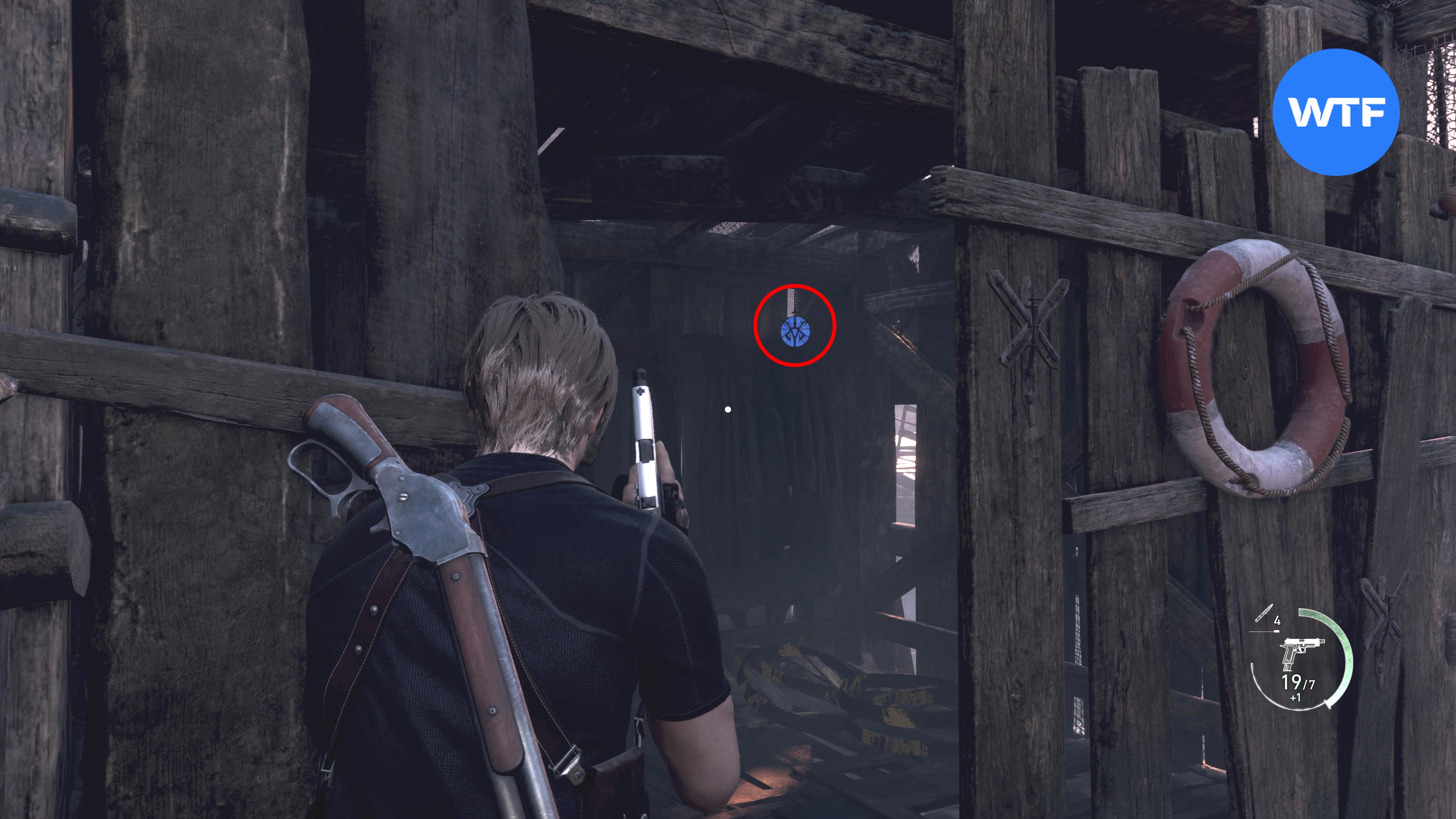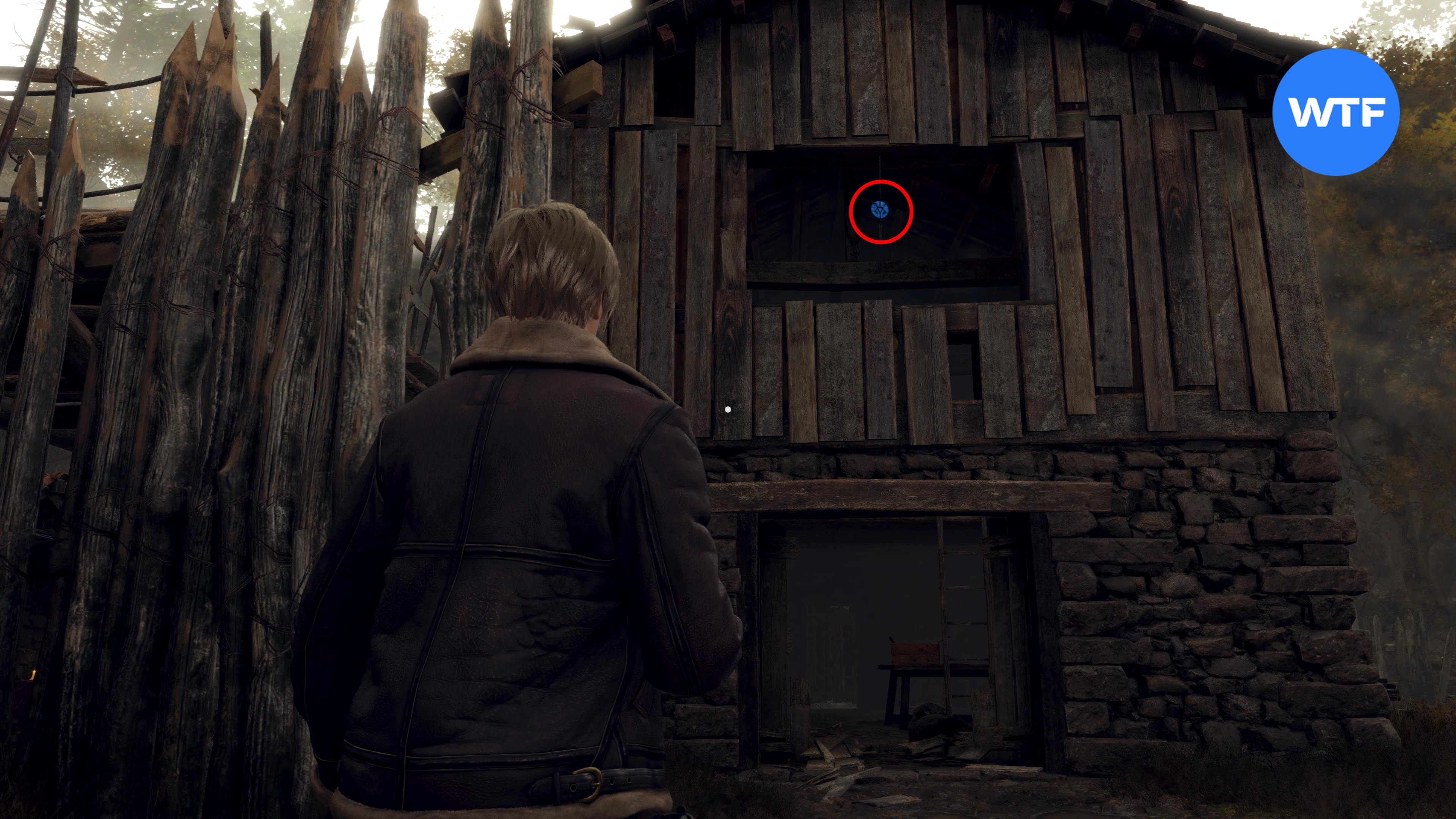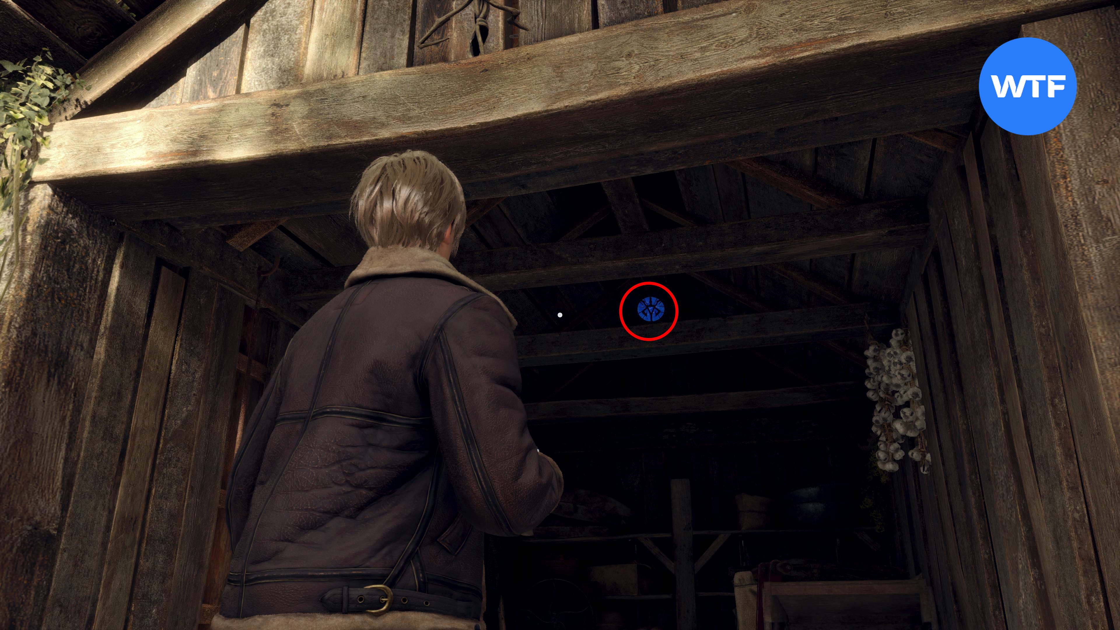 Вам нужен большой сарай, где вы подбираете шестеренку для механизма на мельнице по сюжету. Встаньте лицом к главному входу и стреляйте в синий медальон через окно на втором этаже.