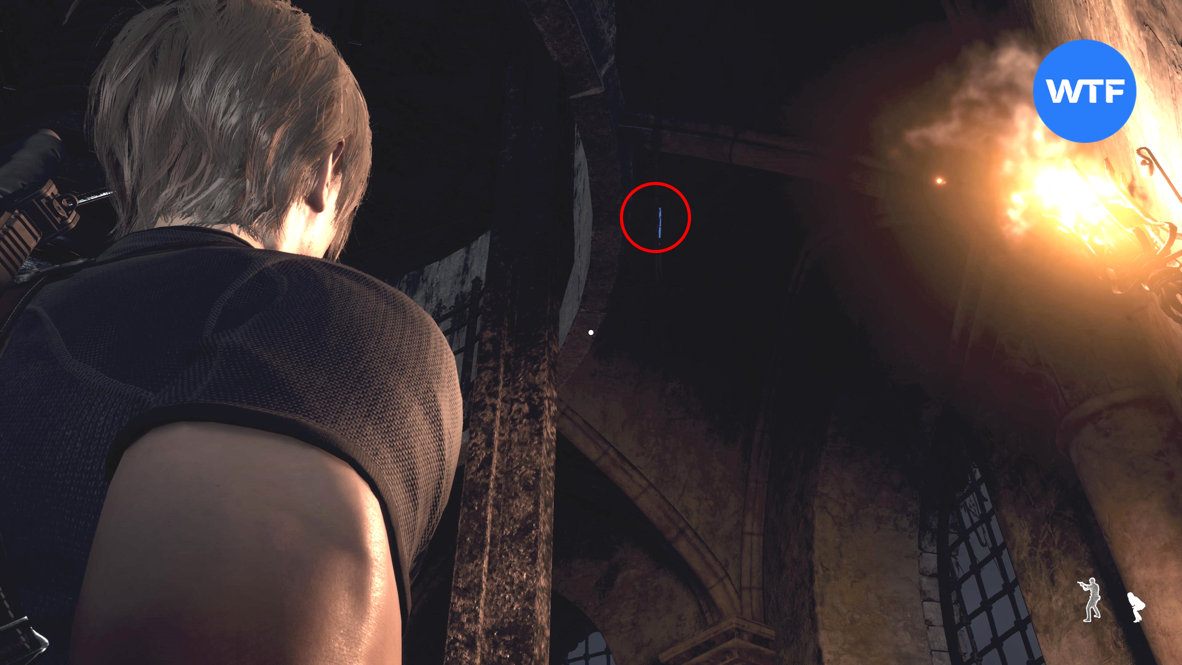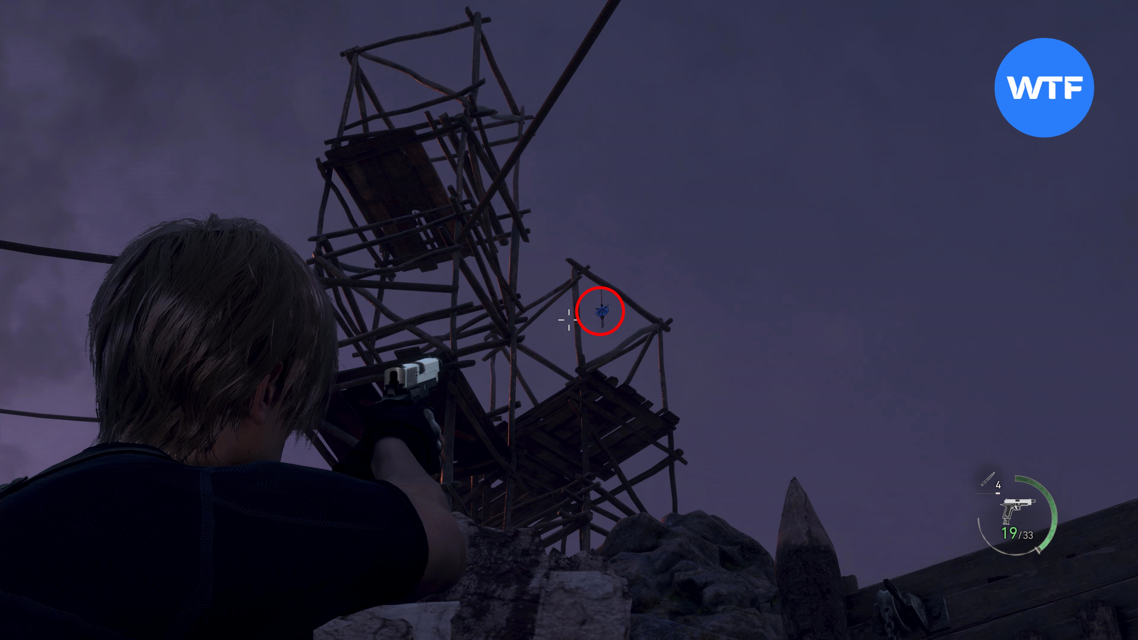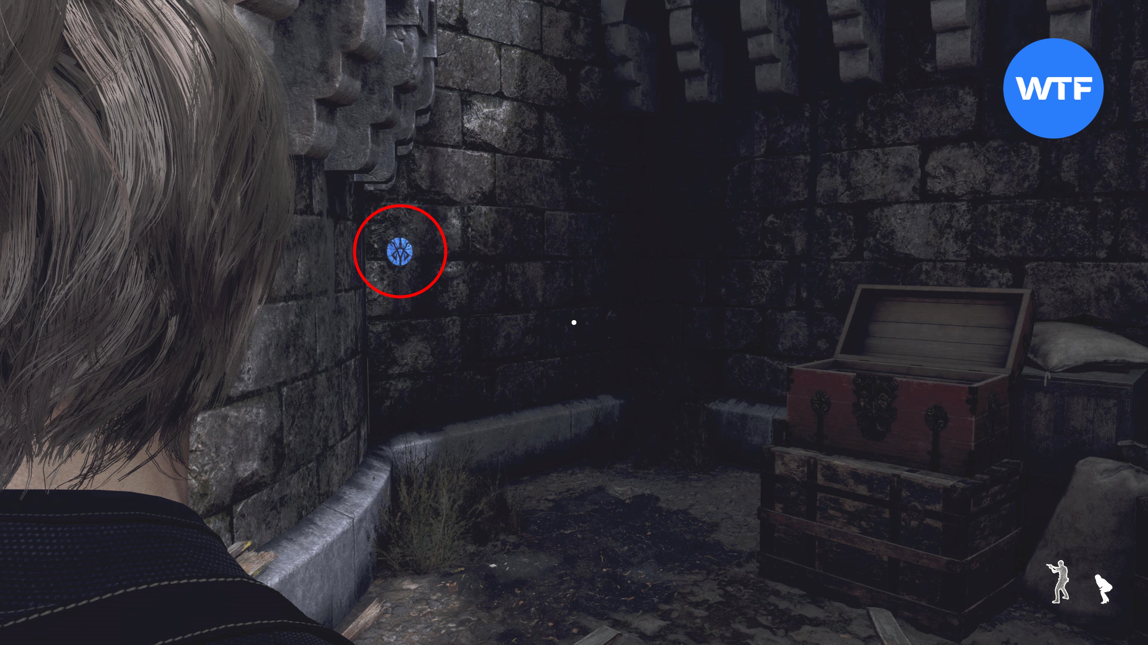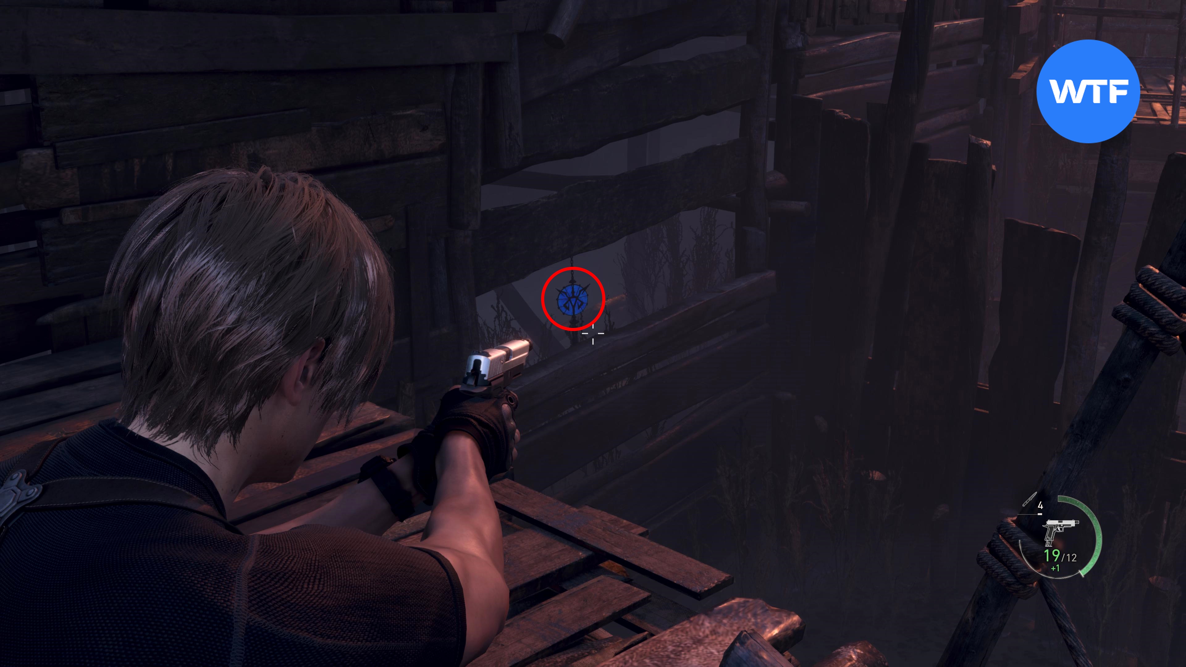 Вам нужен большой сарай, где вы подбираете шестеренку для механизма на мельнице по сюжету. Встаньте лицом к главному входу и стреляйте в синий медальон через окно на втором этаже.