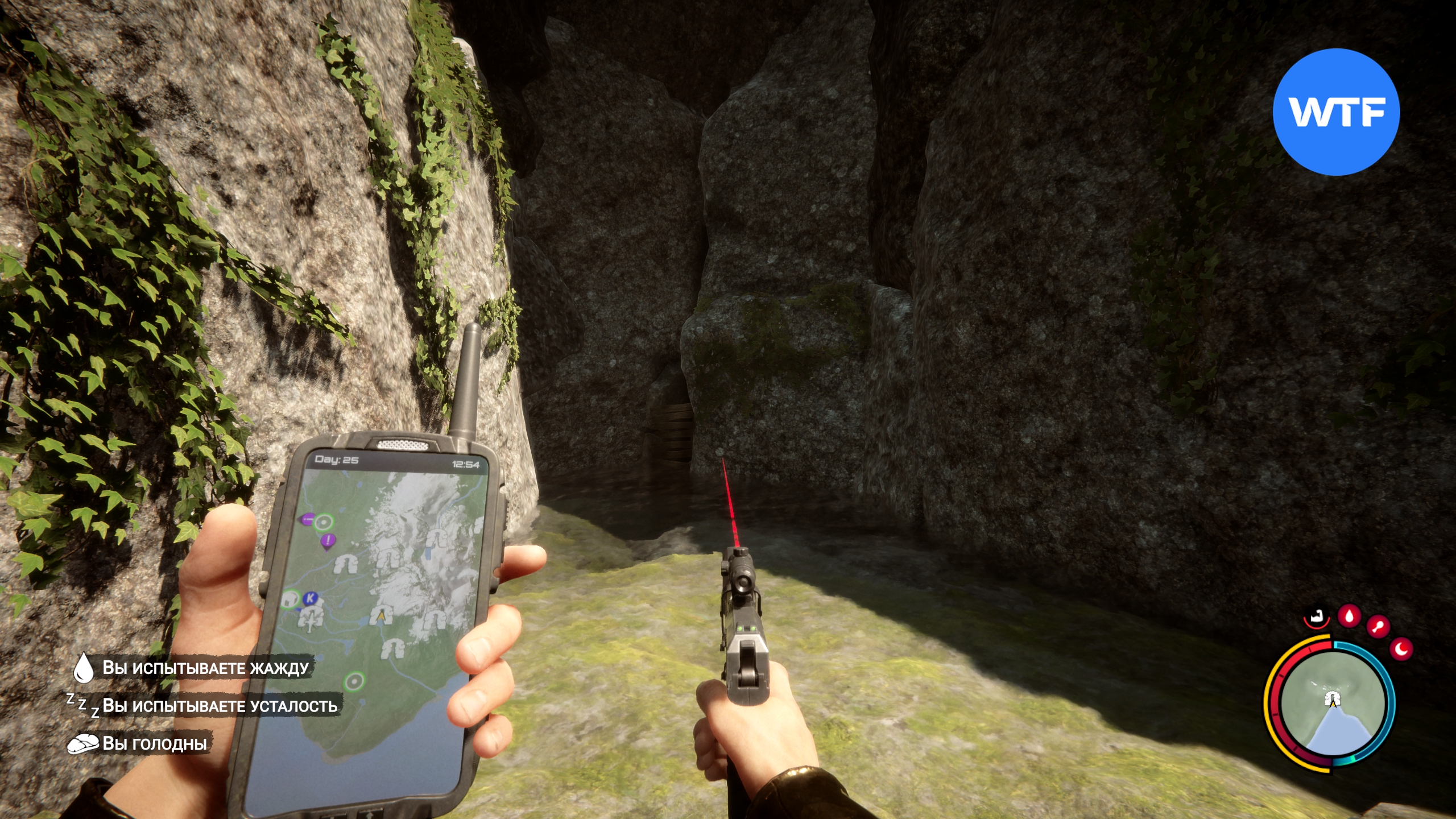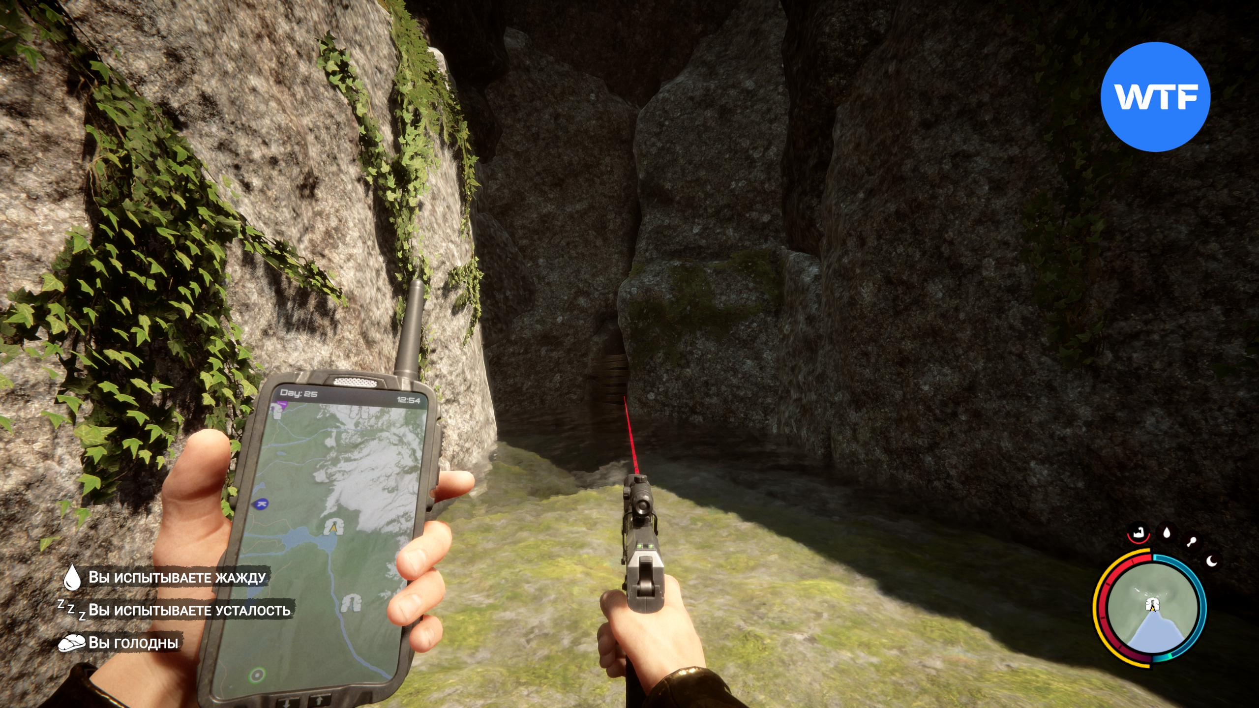 Вход в пещеру, который вам нужен, показан на GPS-трекере со скриншота ниже. Чтобы попасть внутрь, вам потребуется отыскать довольно неприметную расщелину в скалах — она тоже показана на скриншотах.