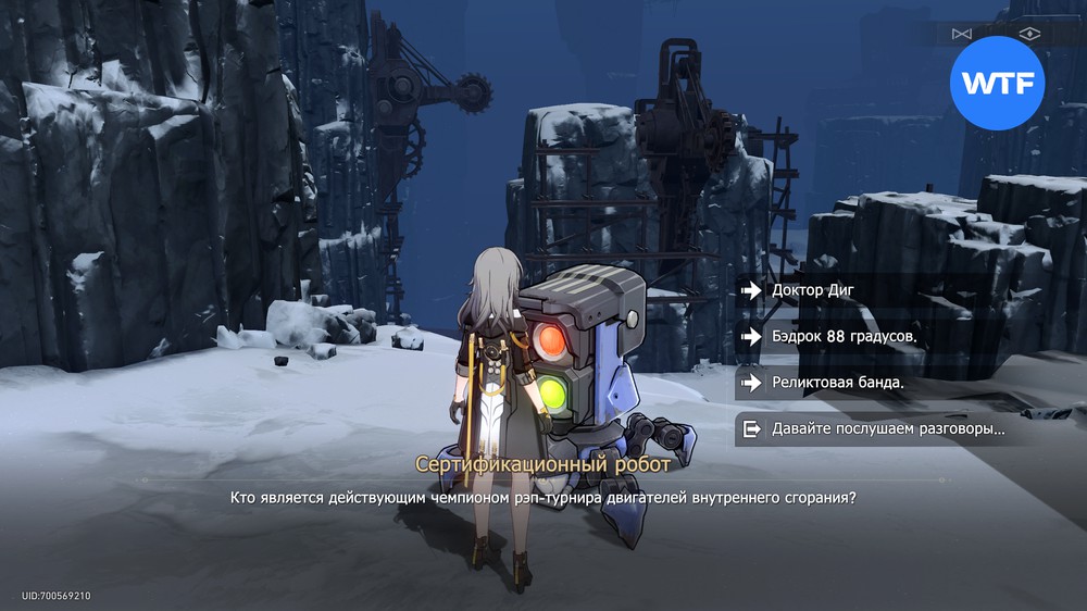 Первый сертификационный робот озадачит вас вопросом о действующем чемпионе рэп-турнира. Чтобы узнать правильный ответ, послушайте разговор пары людей неподалеку.