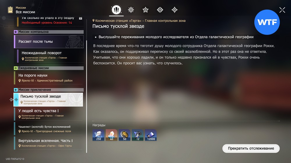 «Письмо тусклой звезде» — миссия приключения в Honkai: Star Rail, которую вы получите от молодого исследователя из Отдела галактической географии Рокки. По мере продвижения по сюжету это сообщение придет на ваш смартфон.