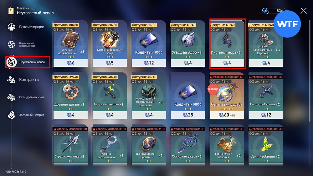 Попасть в магазин можно из меню вашего смартфона. Для покупки за неугасаемый пепел доступно 120 (40 раз по 3 штуки) инстинкта вора, раз в несколько дней это количество обновляется.