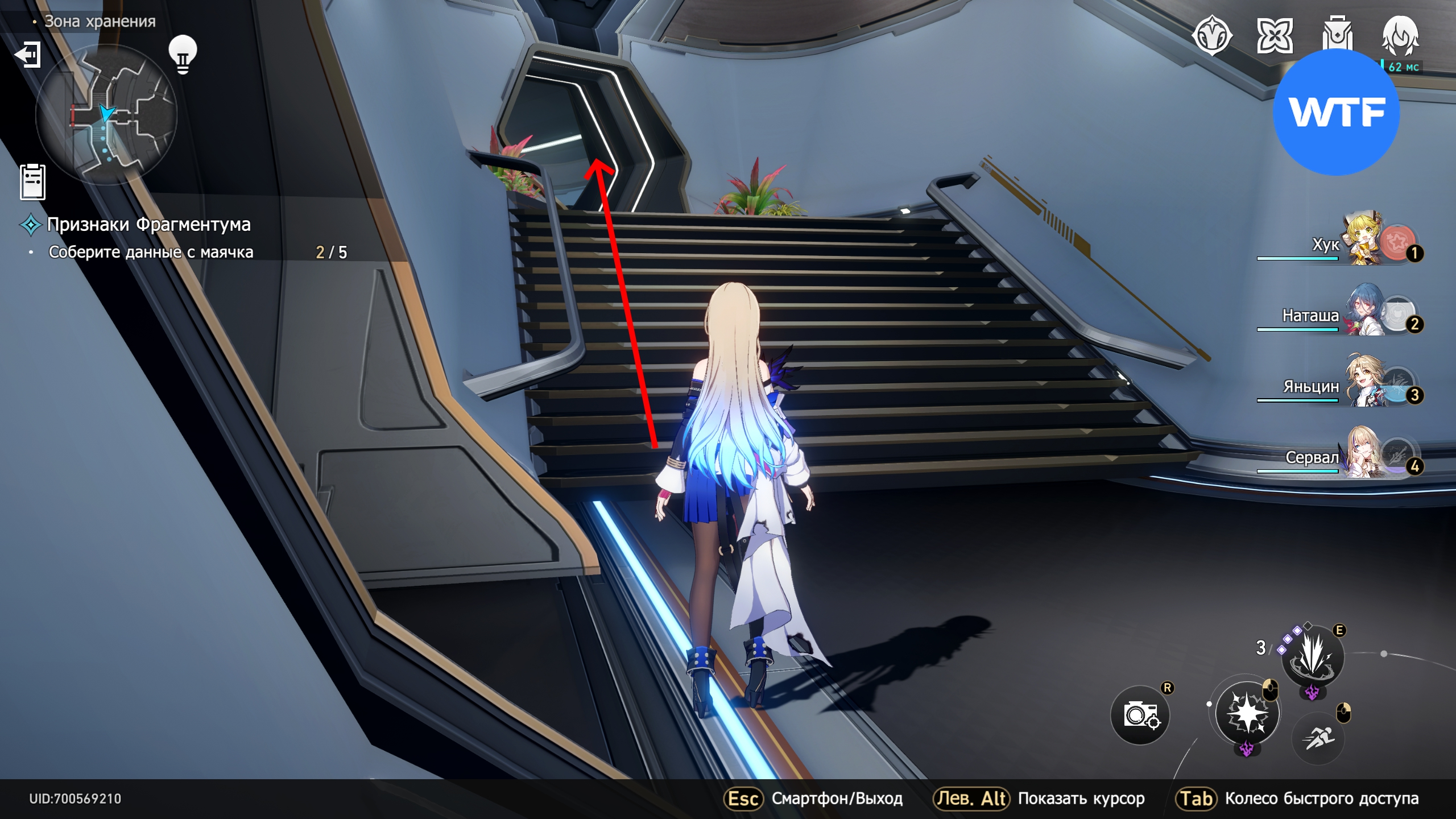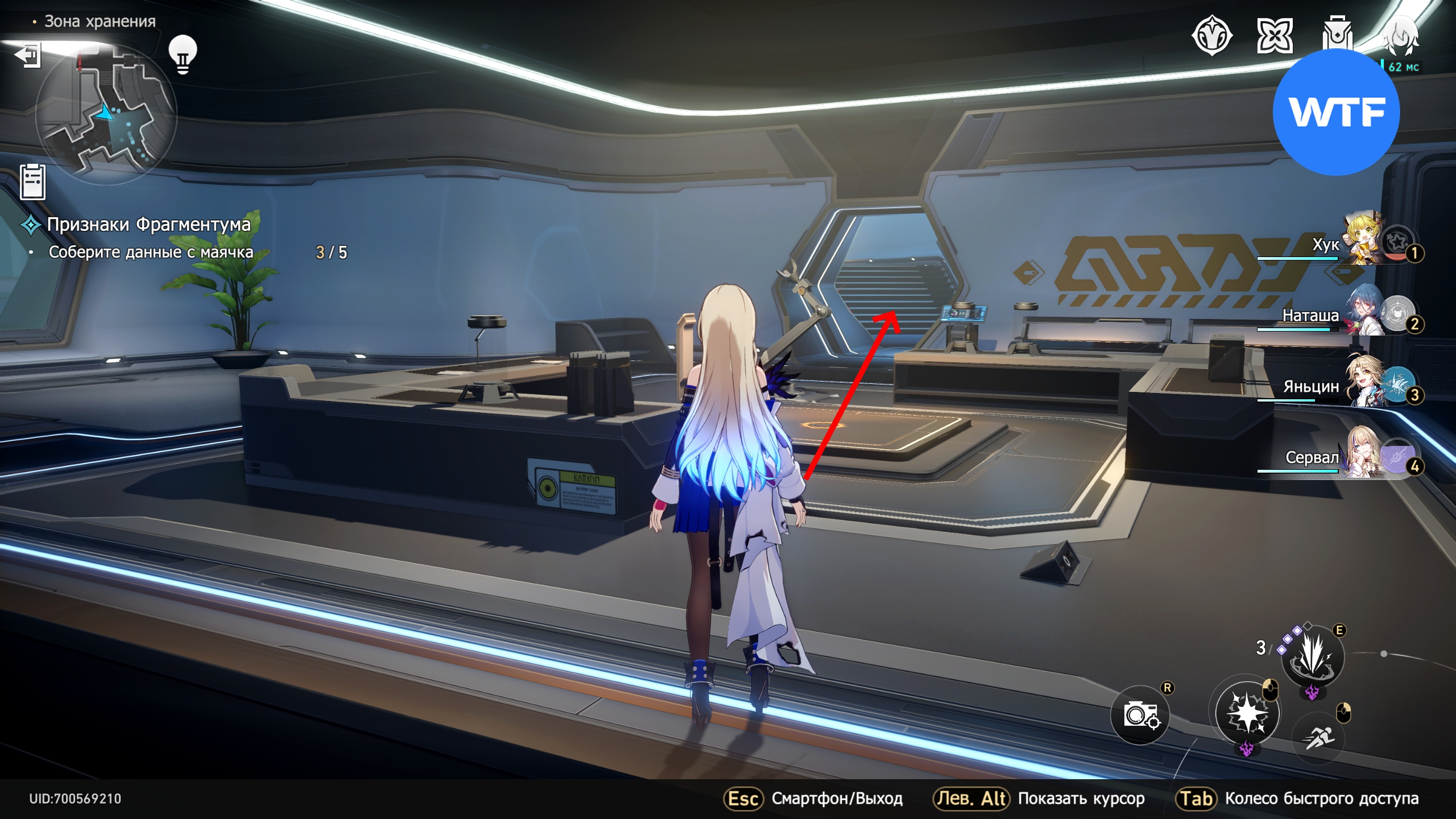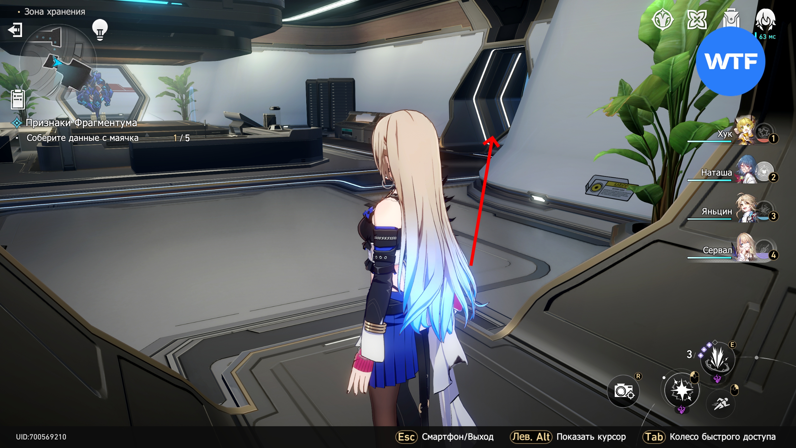 Теперь идите в единственный доступный вам проход мимо большой светящейся голограммы. Пройдя через арку, развернитесь и посмотрите наверх, чтобы найти второго Вуббабу с маячком прямо над ней.
