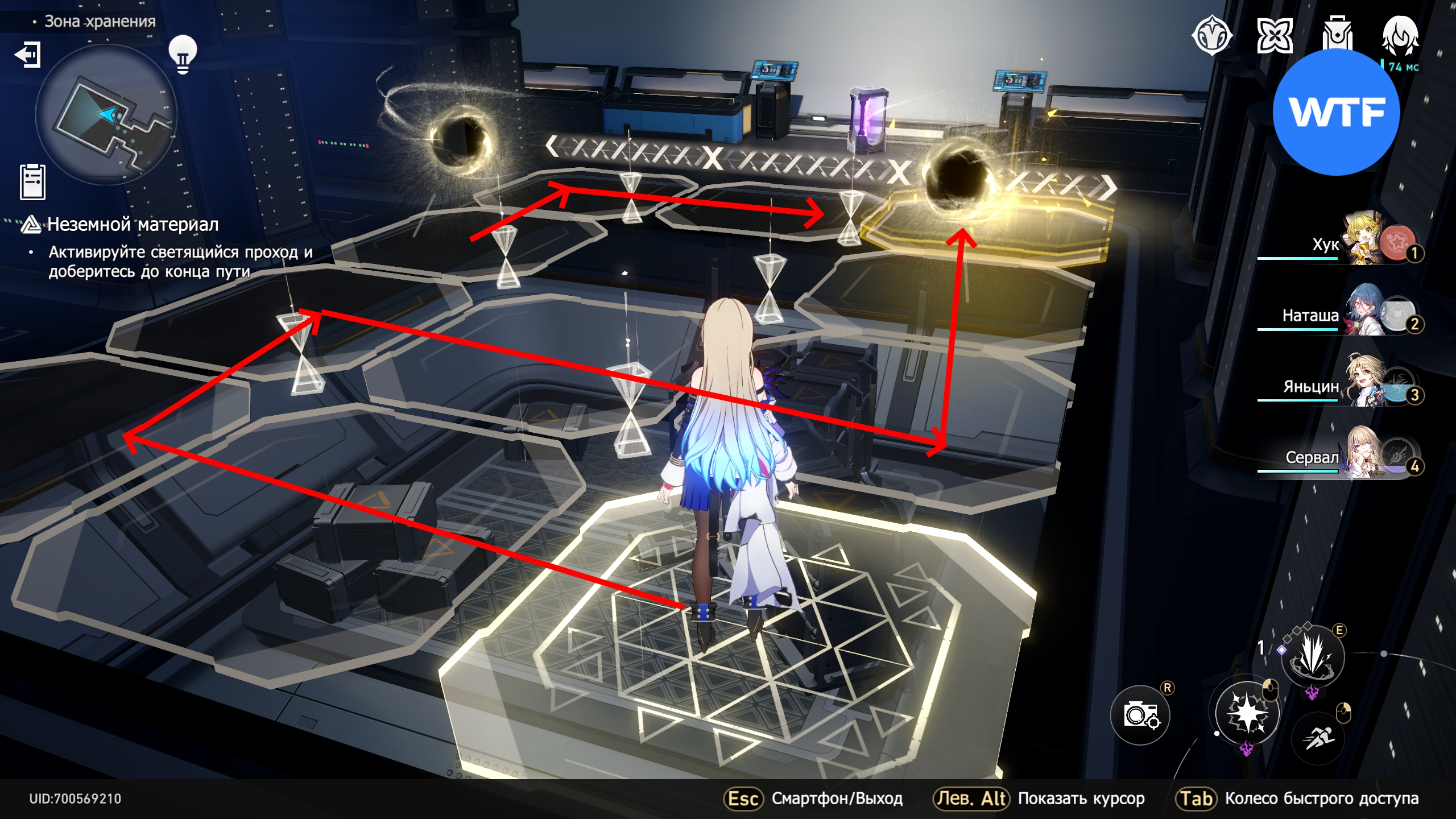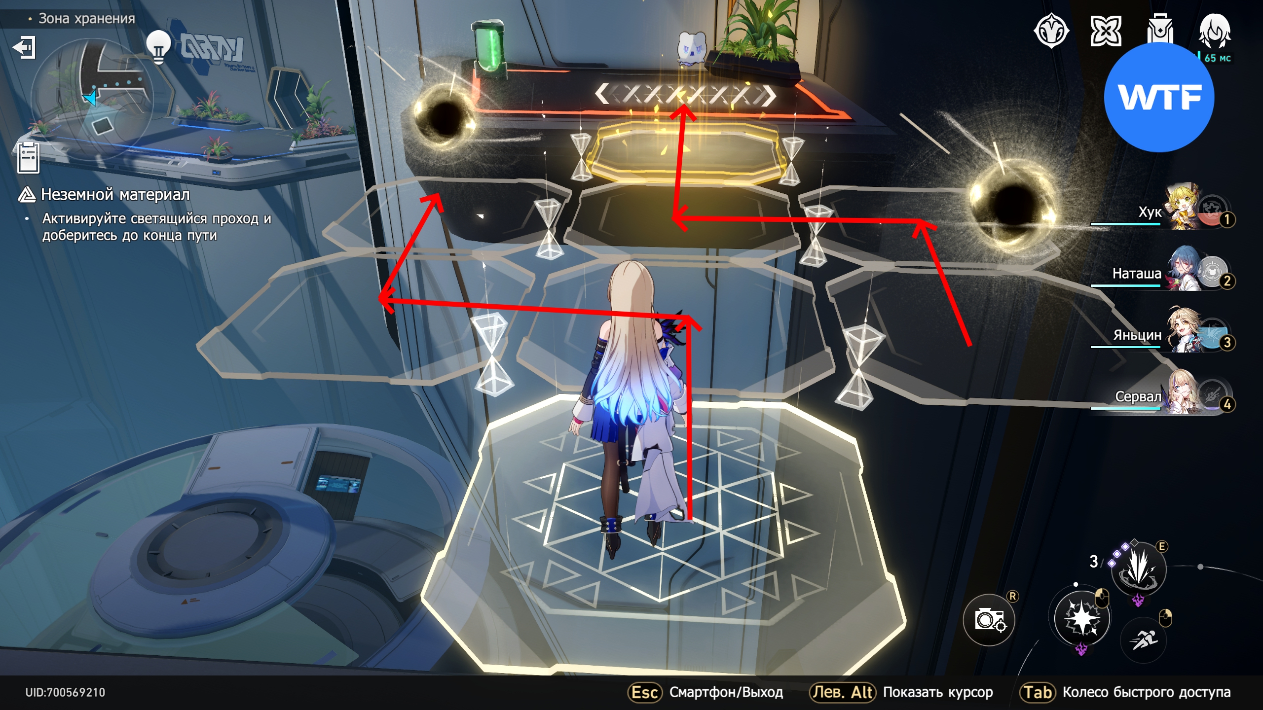 Решение загадки показано на скриншоте ниже. Пройдя по всем плиткам вы сможете добраться до другого конца комнаты и отсканировать Вуббабу с маячком в углу.