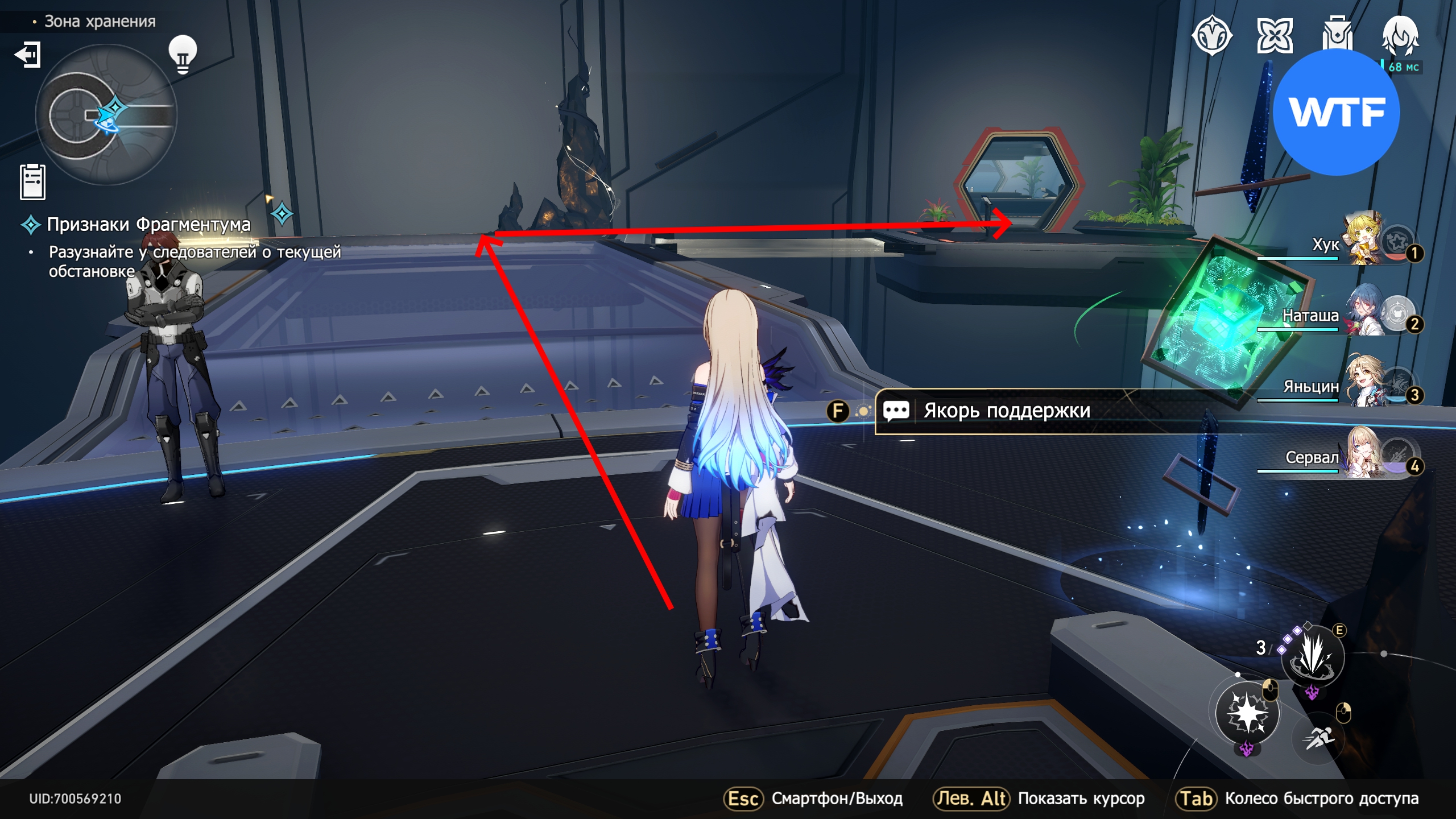 Ориентироваться без карты не очень удобно, поэтому весь путь мы будем описывать последовательно. Пройдите по светящемуся мосту слева от якоря поддержки, затем мимо платформы с врагом и зайдите в комнату. Вуббабу с маячком будет ждать вас в дальнем правом углу.