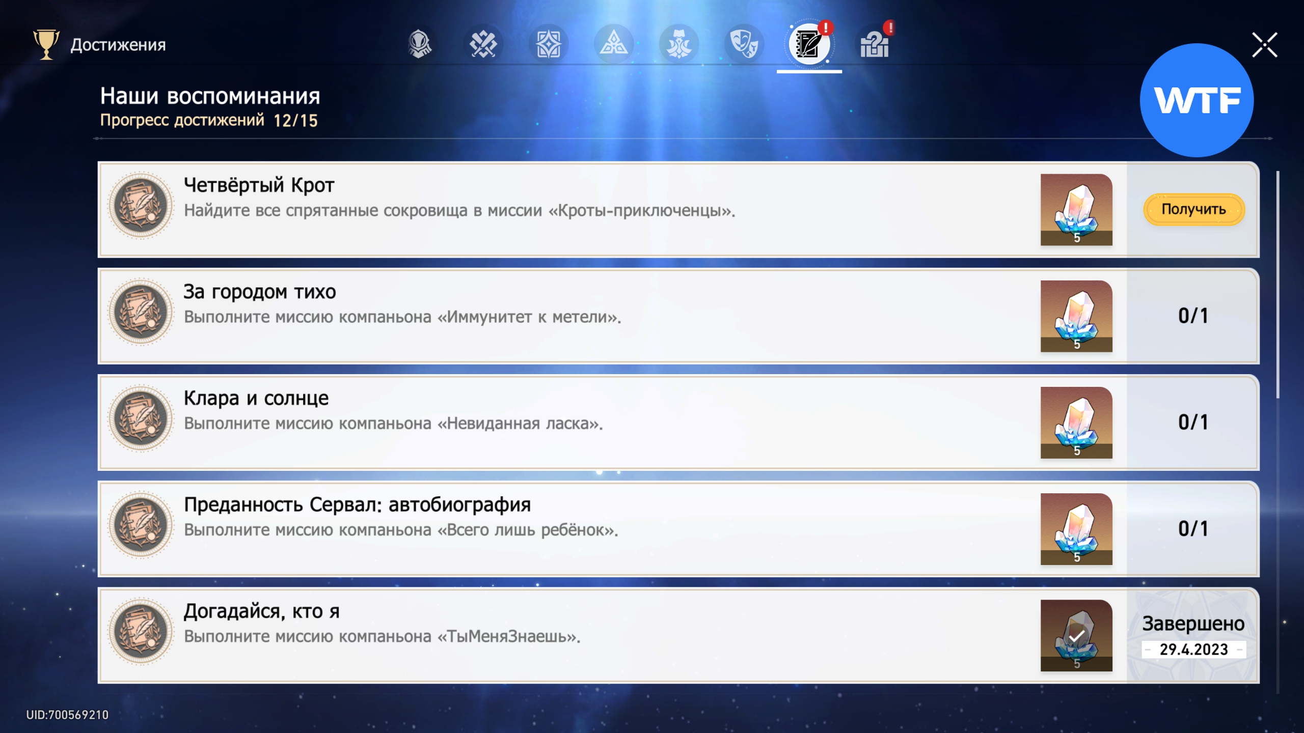 - Достижения «Четвёртый крот» и «История о Кротах»
