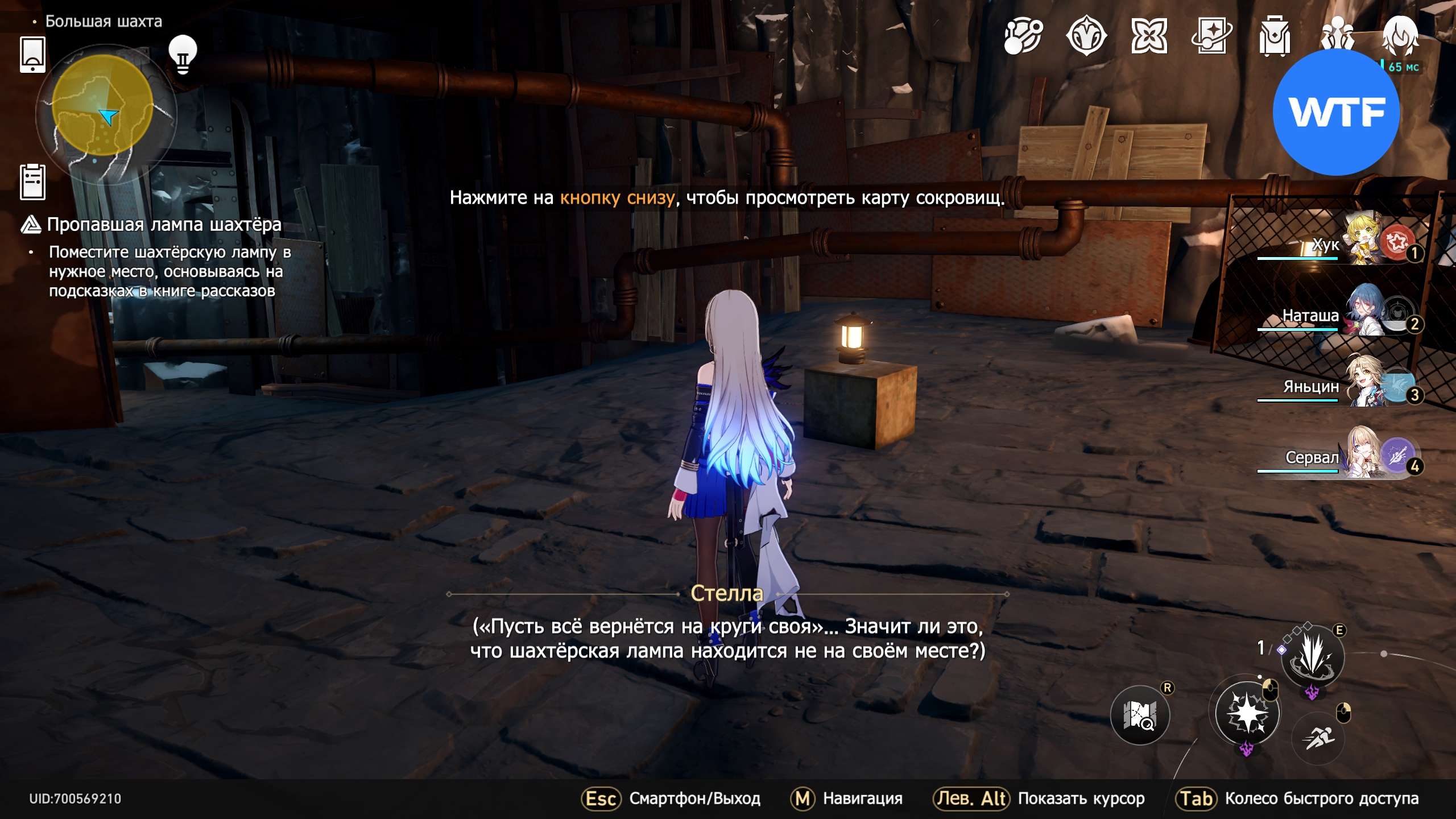 Подсказка из карты сокровищ: «Помню, они говорили: пусть все вернется на круги своя, пусть звезды вернуться на небеса. Внимательно осмотрите шахтерские лампы вокруг вас, чтобы найти ответ».