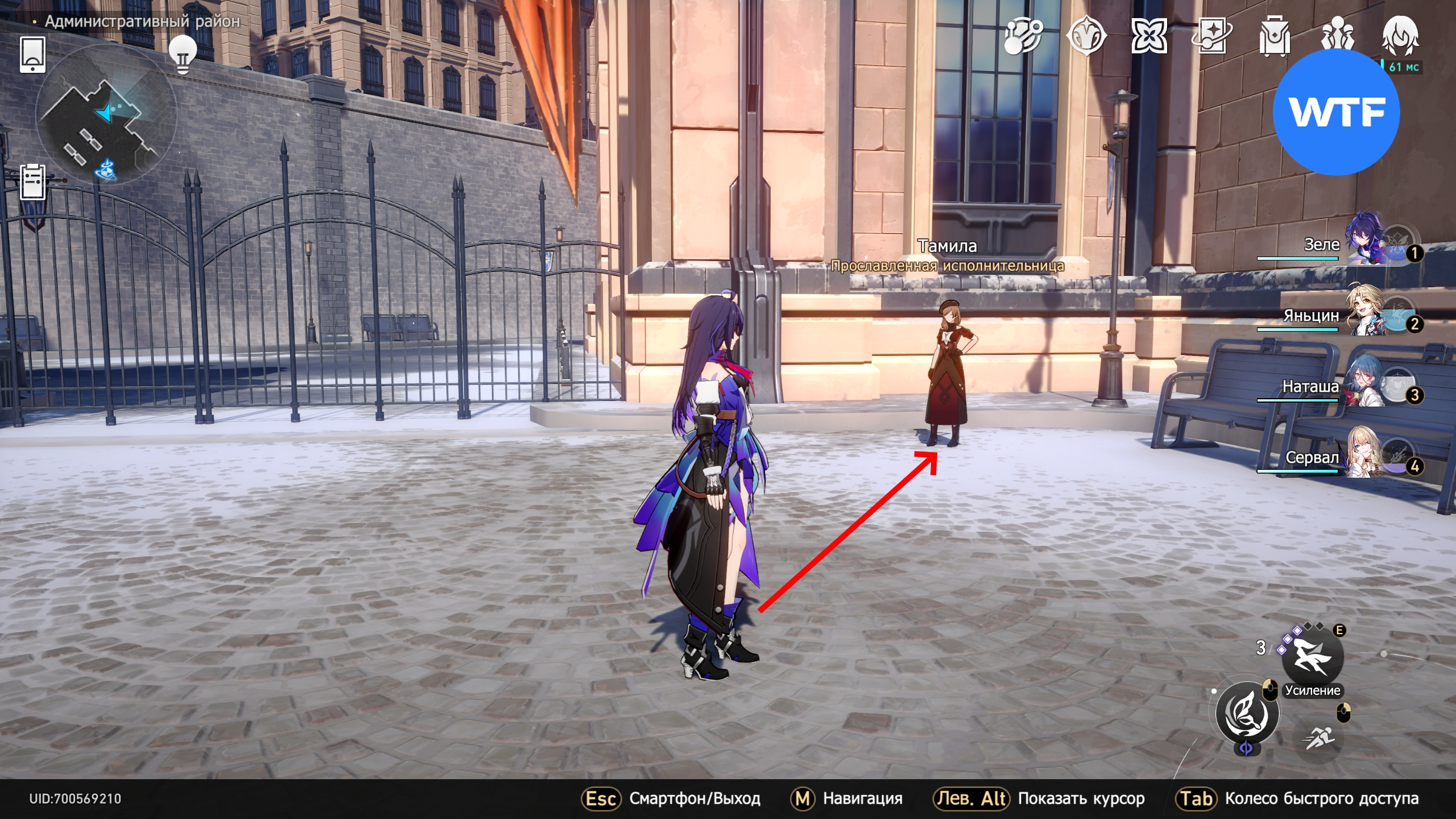 Также рекомендуем подойти к Тамиле, стоящей слева от здания театра. Поговорив с ней, можно получить достижение «Ла-ла-ла Ленд». За забором слева от Тамилы стоит еще один мужчина, похоже если возвращаться к нему несколько дней подряд, то можно узнать что-то интересное.