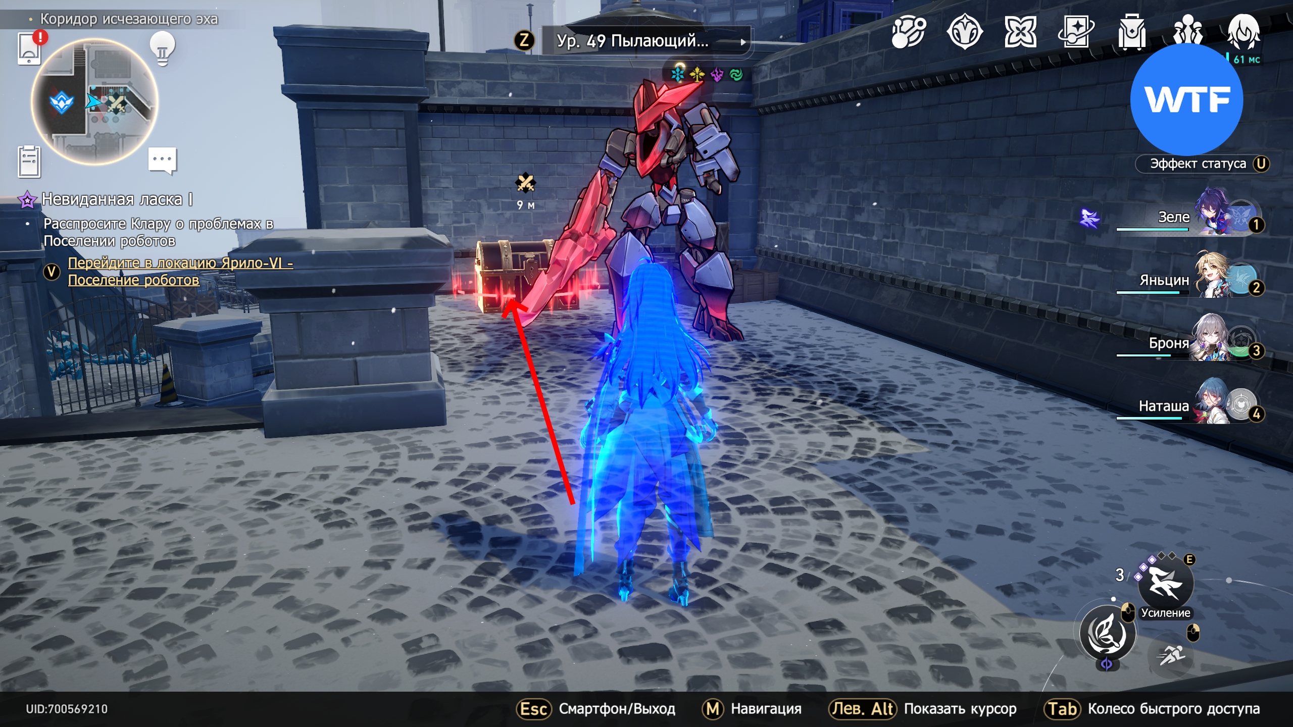 От предыдущего сундука продолжайте бежать вперед до упора и сразитесь с элитным отрядом противников за роскошный сундук. В бою вам пригодятся персонажи с ледяным, физическим, ветряным, мнимым или квантовым уроном.