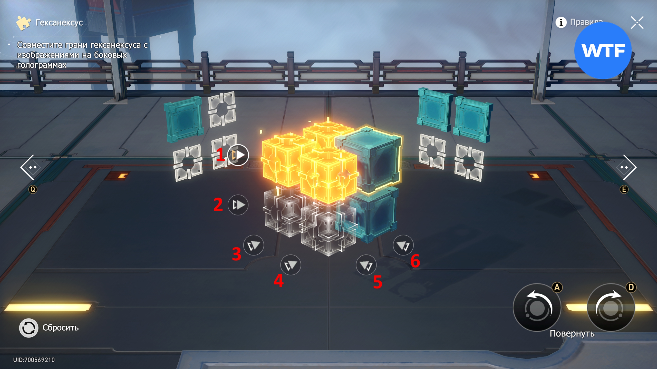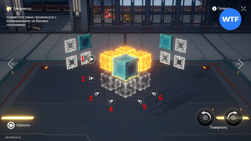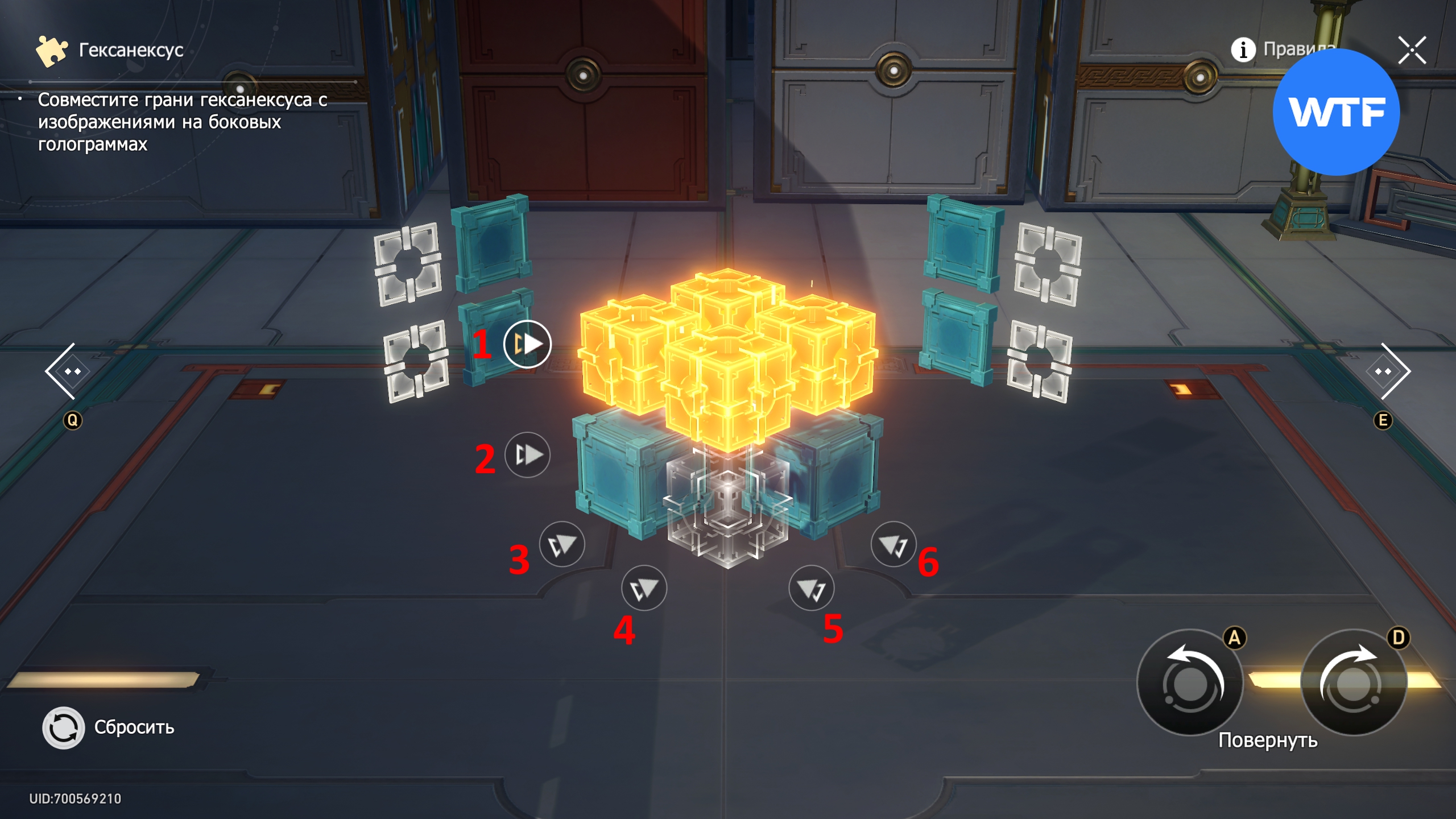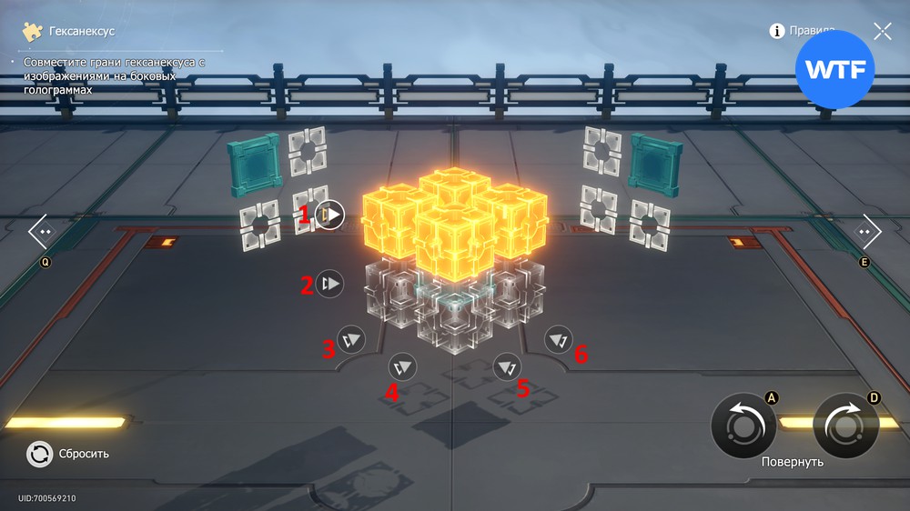 Чтобы решить эту загадку и получить ценный сундук, вам нужно передвигать кубики, выбирая кнопки ниже в следующем порядке (если нужно, сначала сбросьте все к исходному положению):