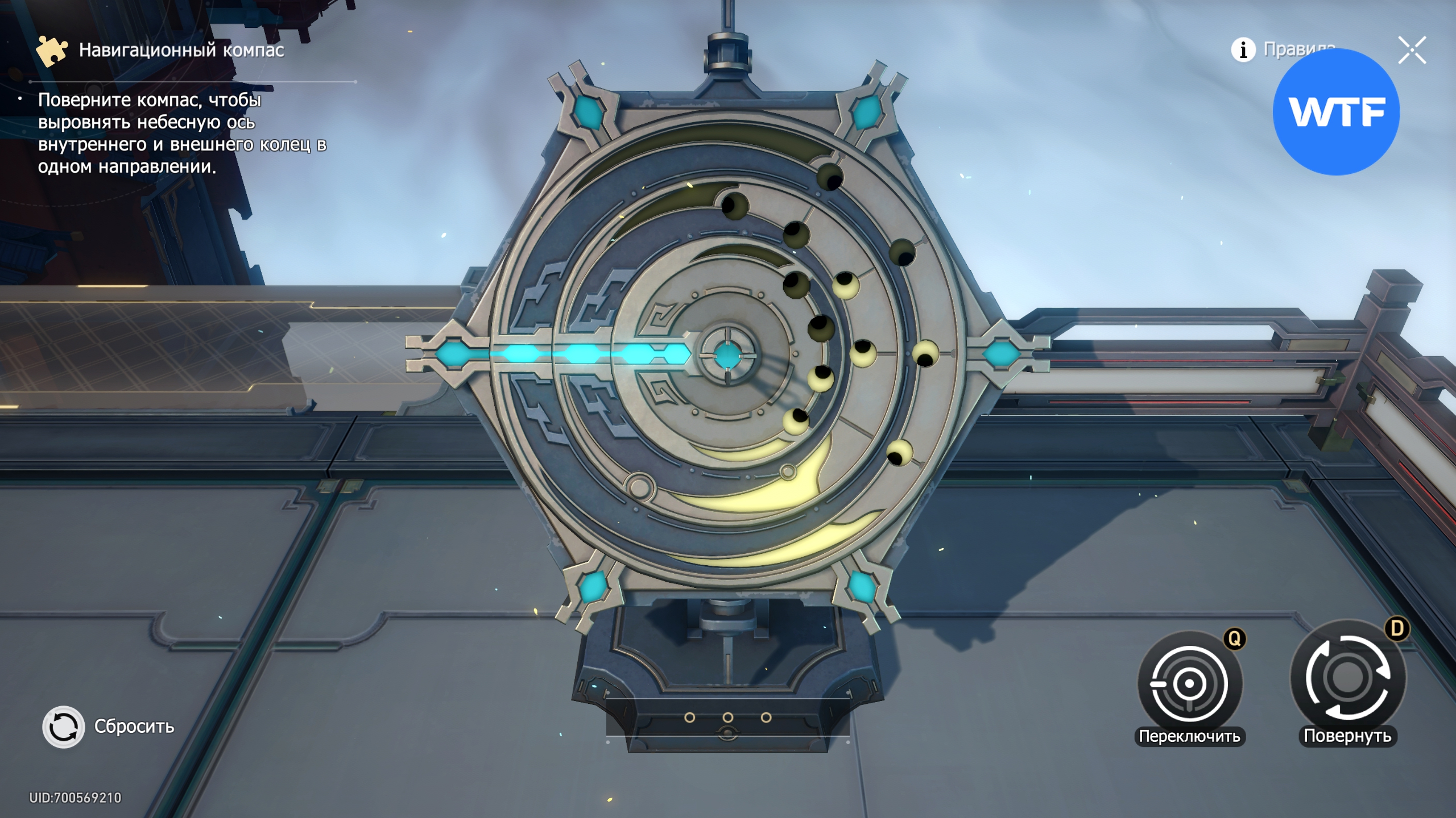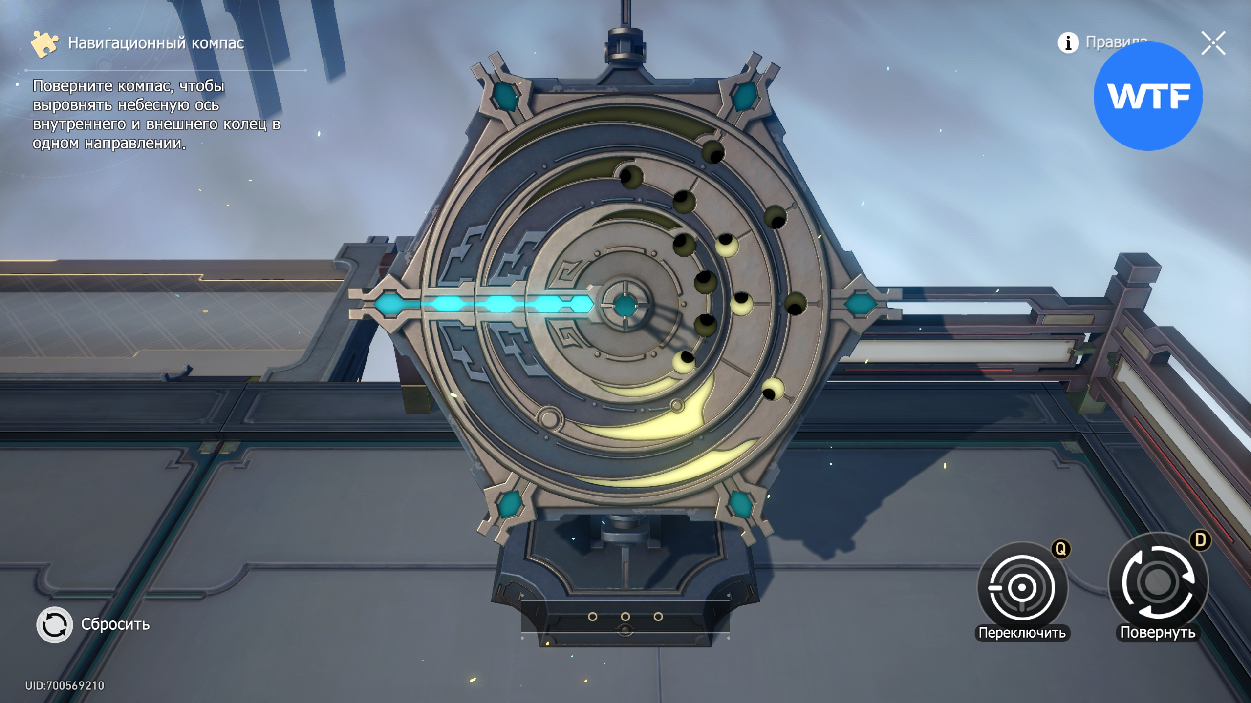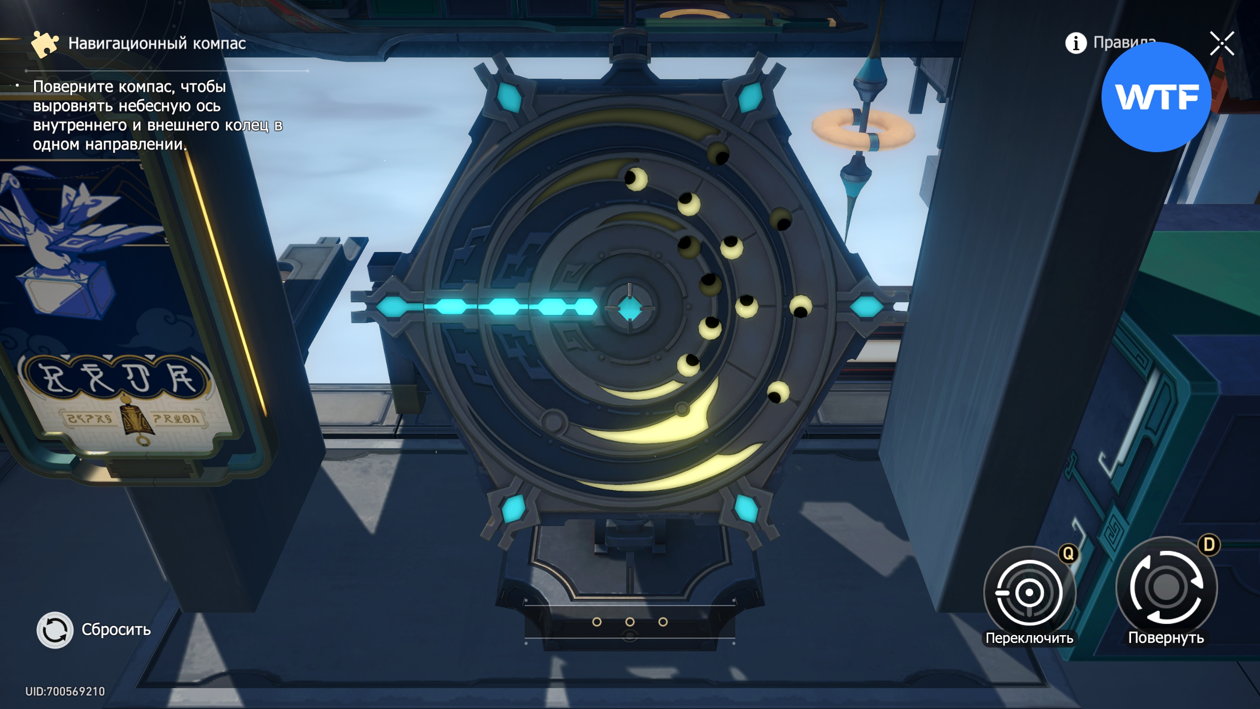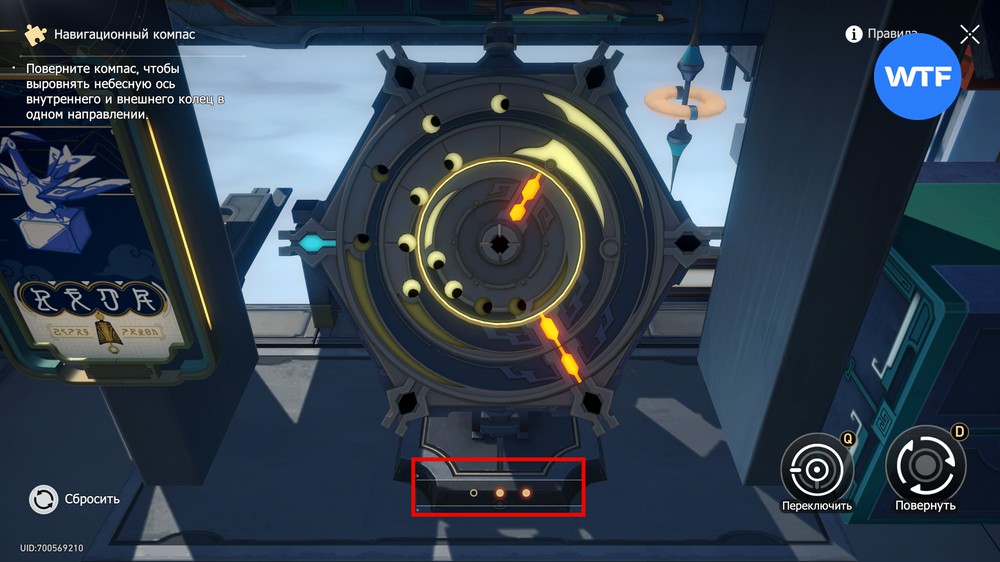 На этой же площадке можно взаимодействовать с навигационным компасом, чтобы получить целых четыре сундука. Чтобы решить загадку, нужно выровнять все круги по голубой линии.
