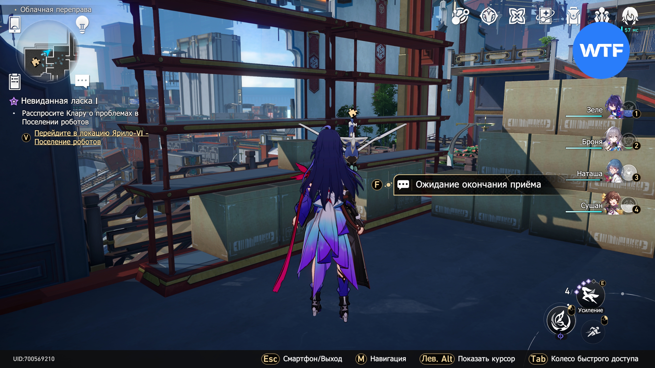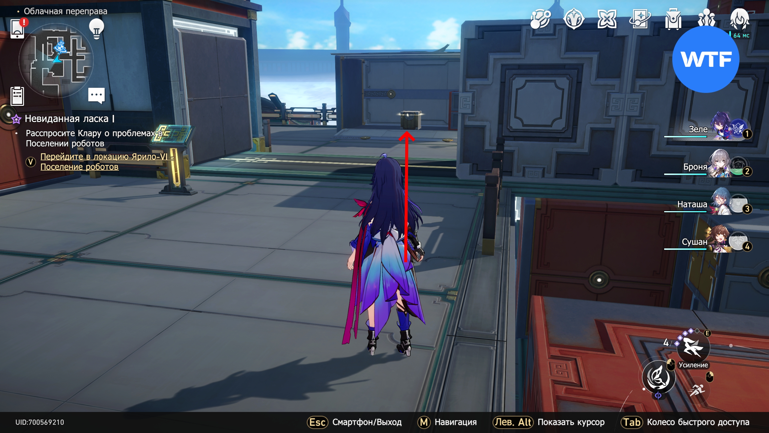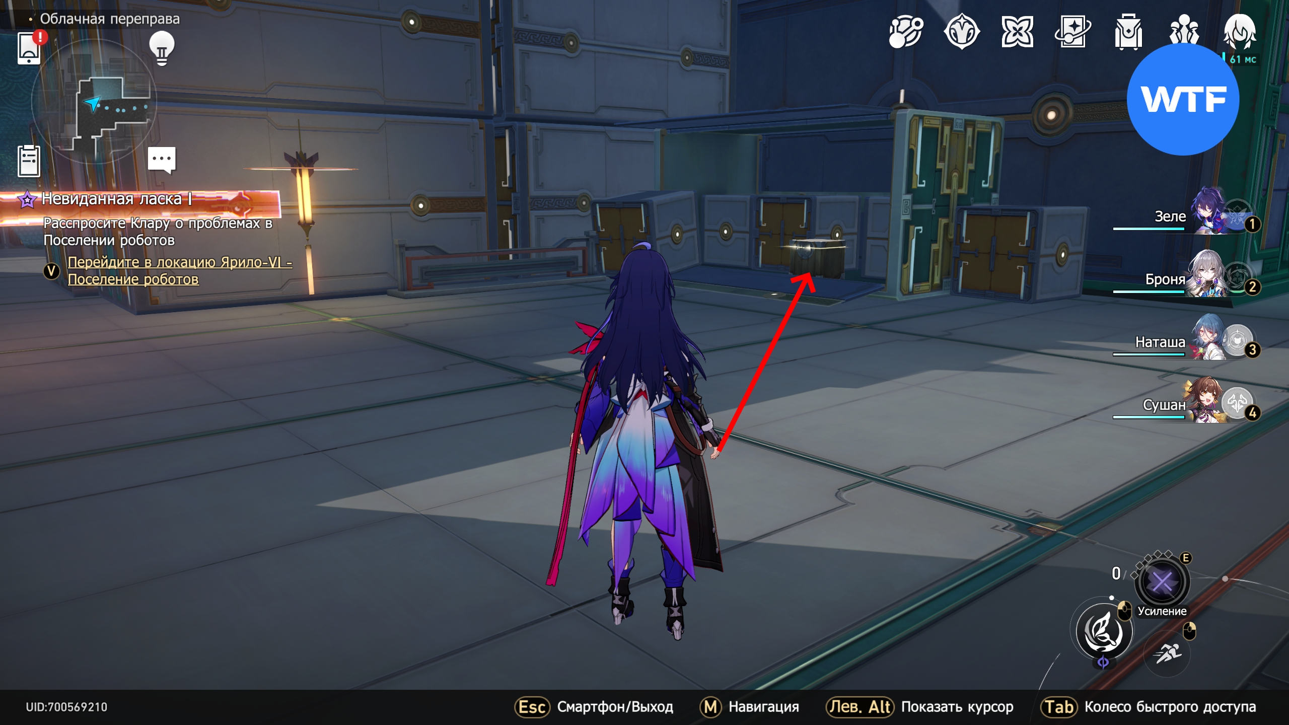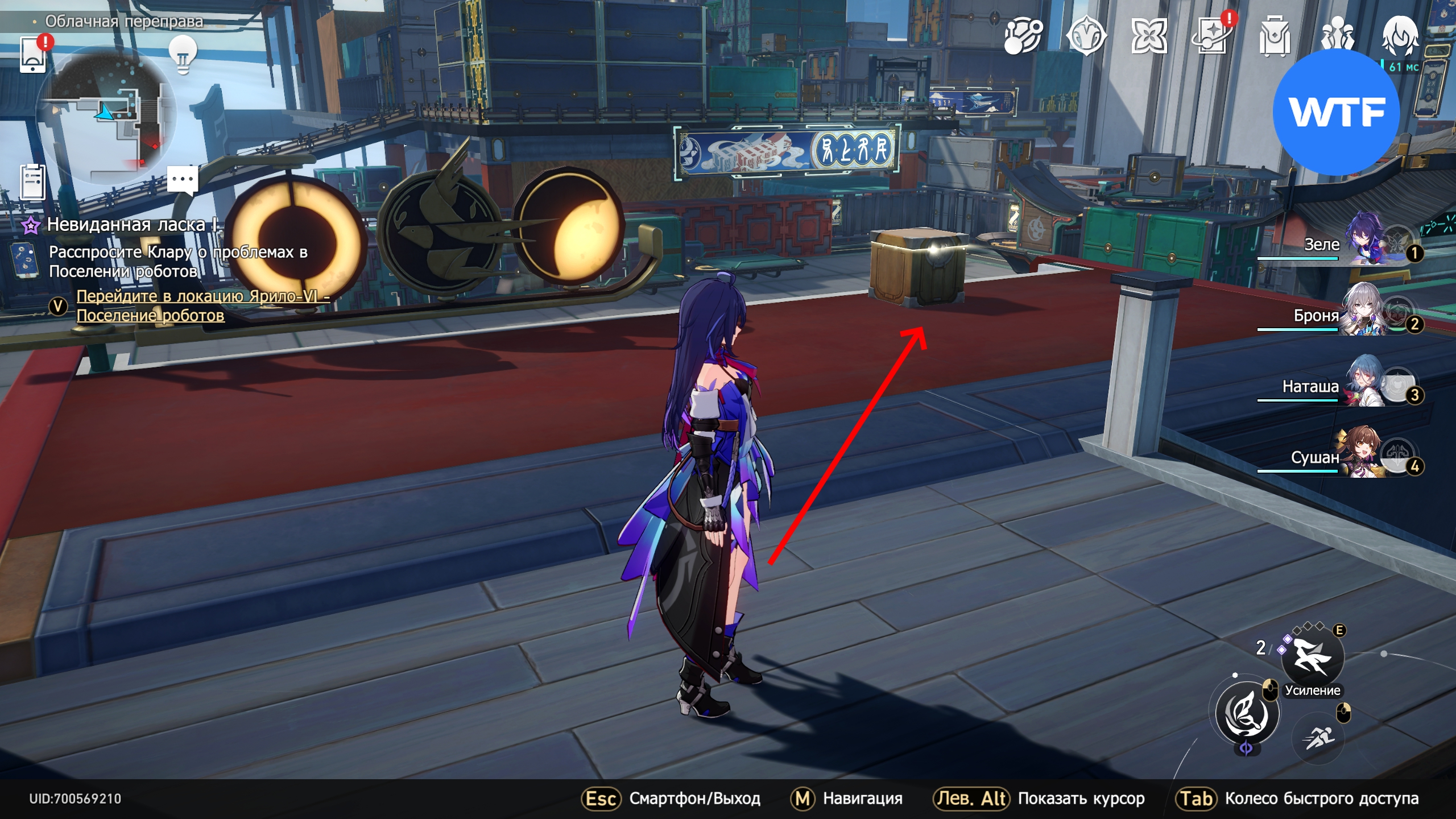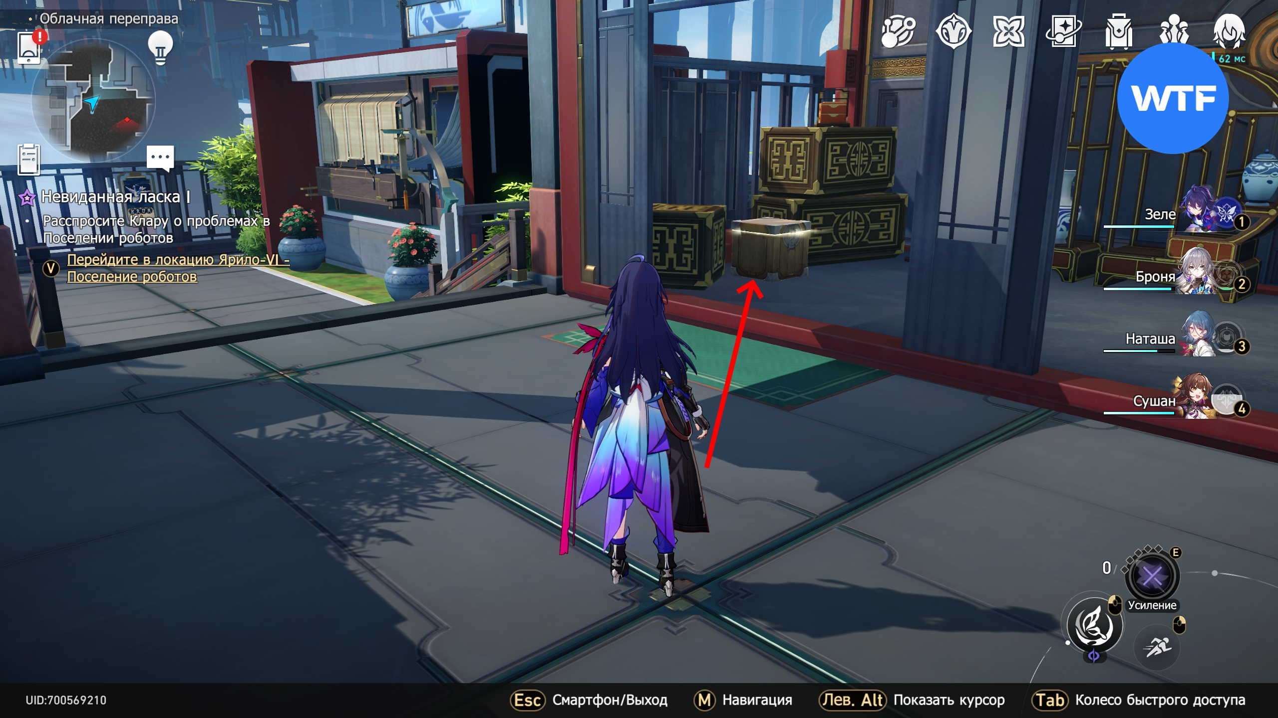 Подойдите к нему и нажмите на «Ожидание окончания приема». Дождитесь, пока робоптаха возьмет коробку и продолжайте идти за неё, открыв по пути ворота. В итоге вы доберетесь до ценного сундука.
