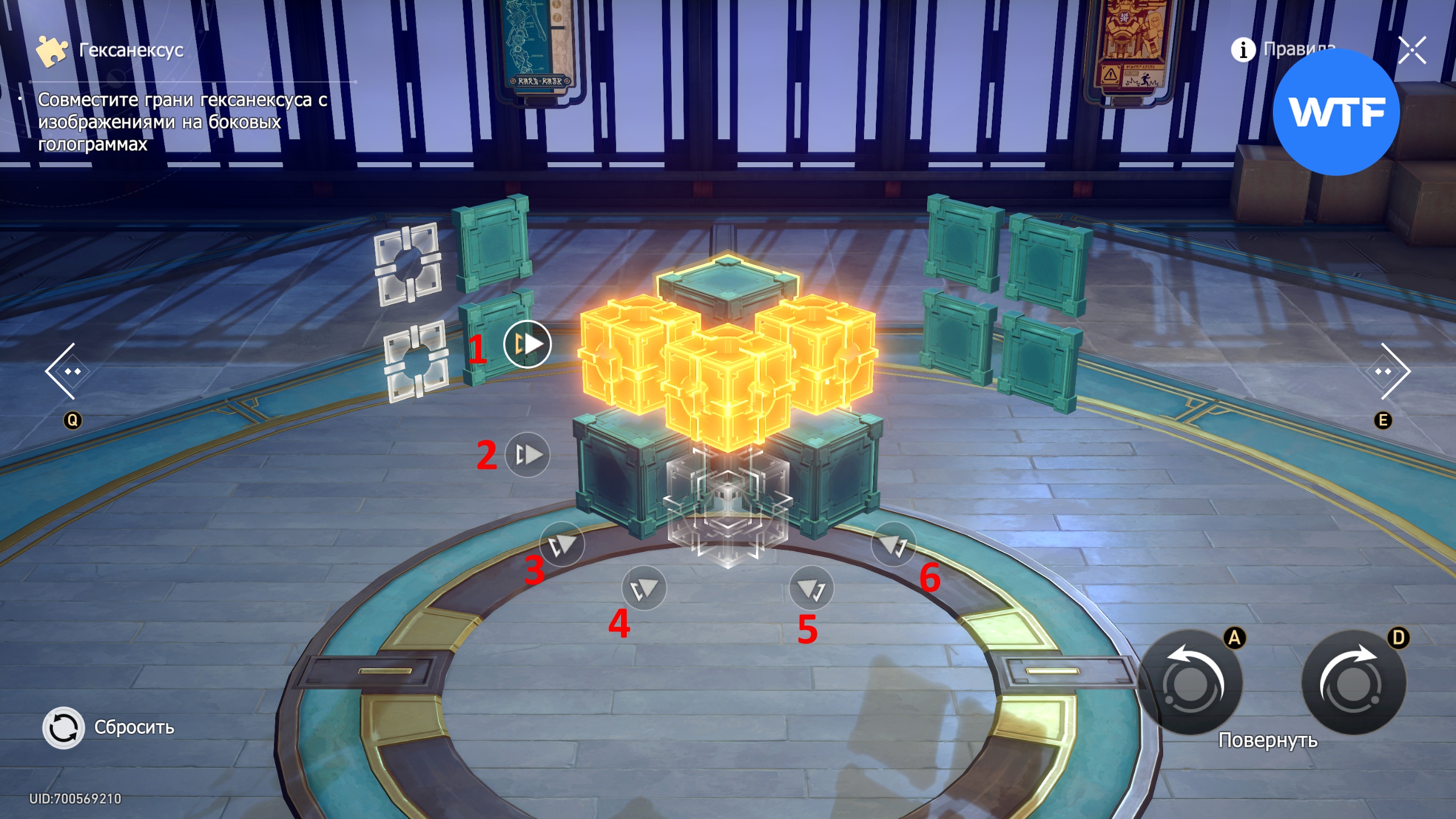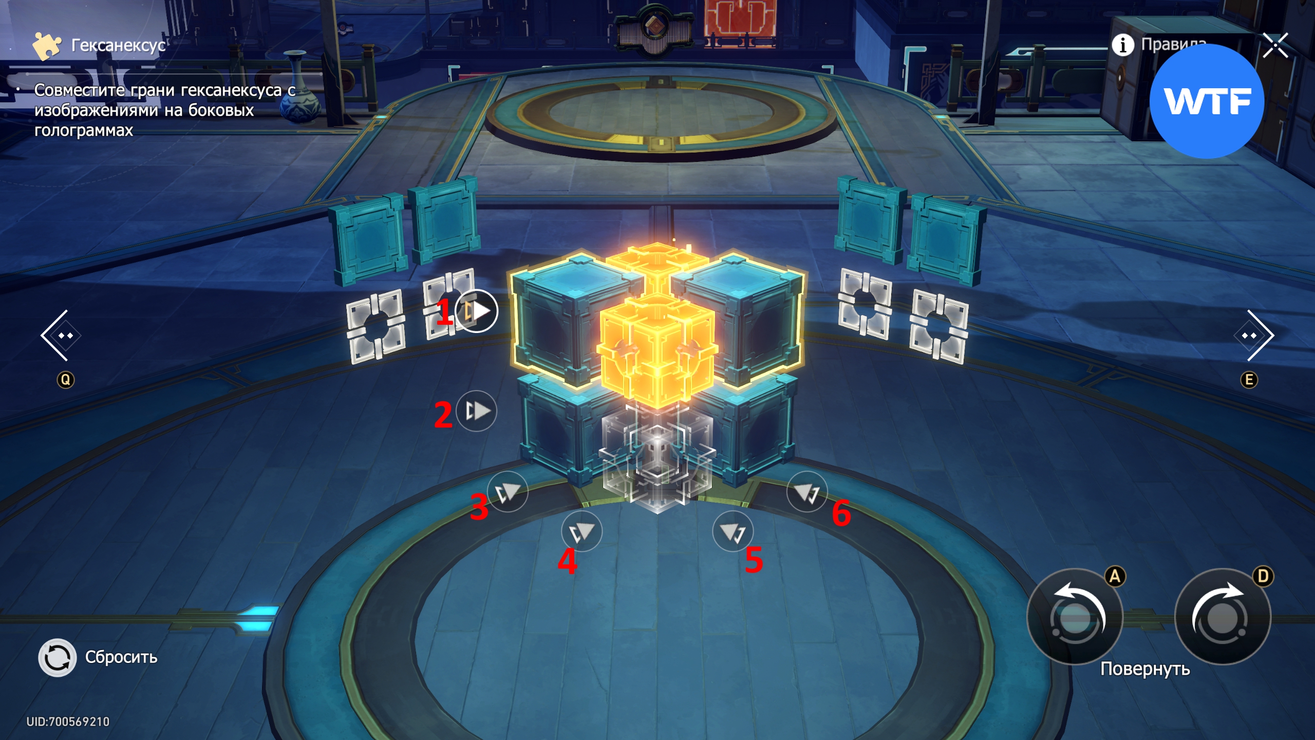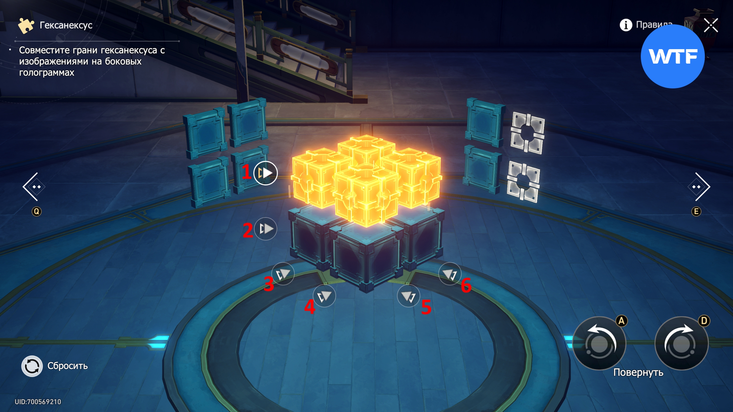 Чтобы его собрать и получить ценный сундук вам нужно передвигать кубики, выбирая кнопки ниже в следующем порядке (если нужно, сначала сбросьте все к исходному положению):