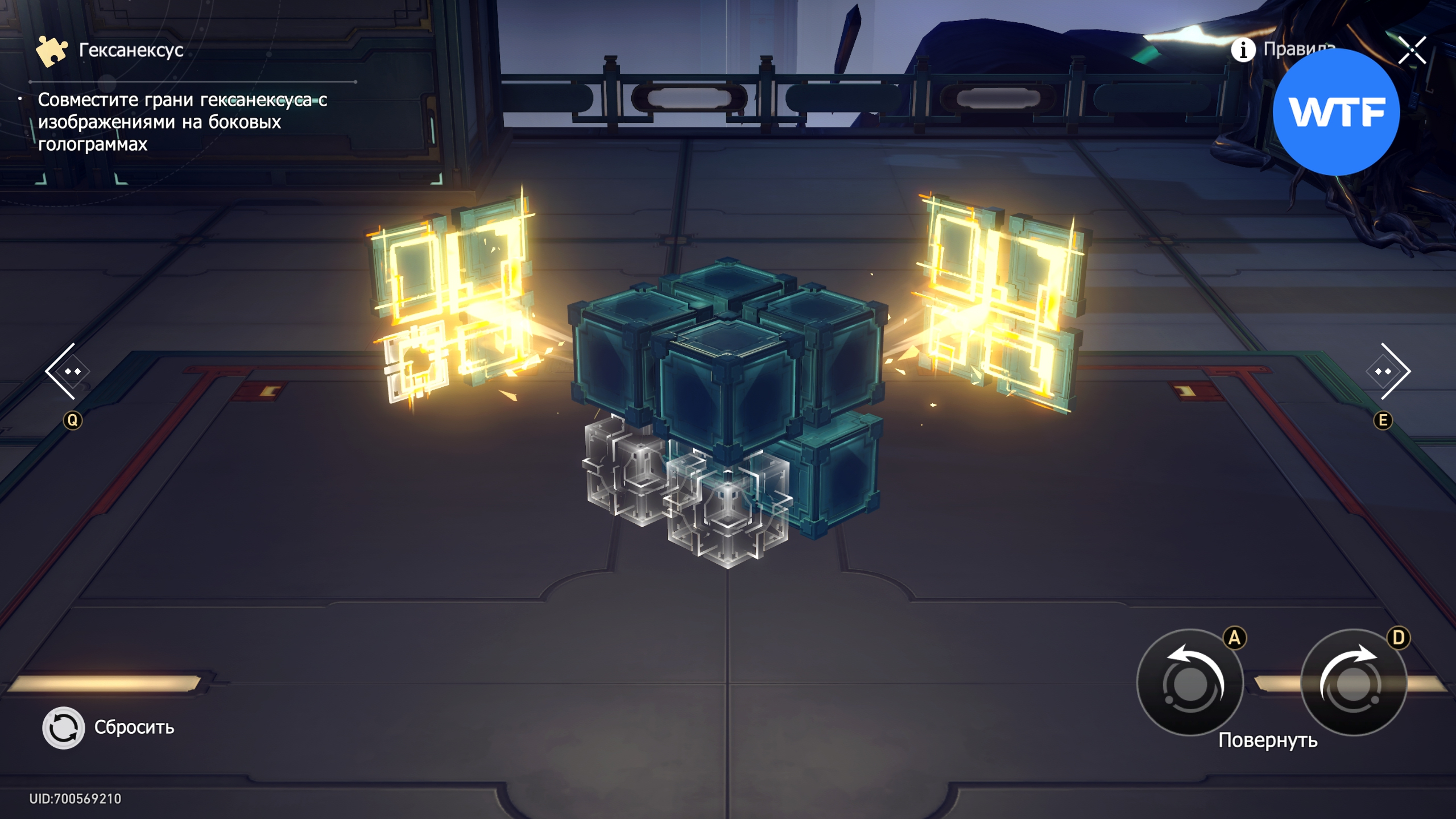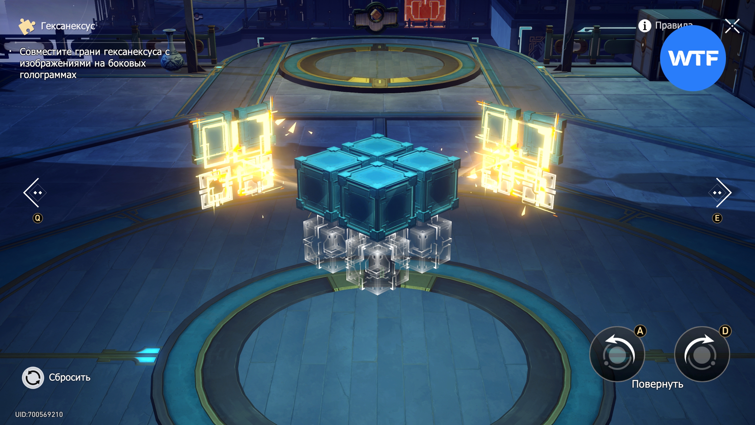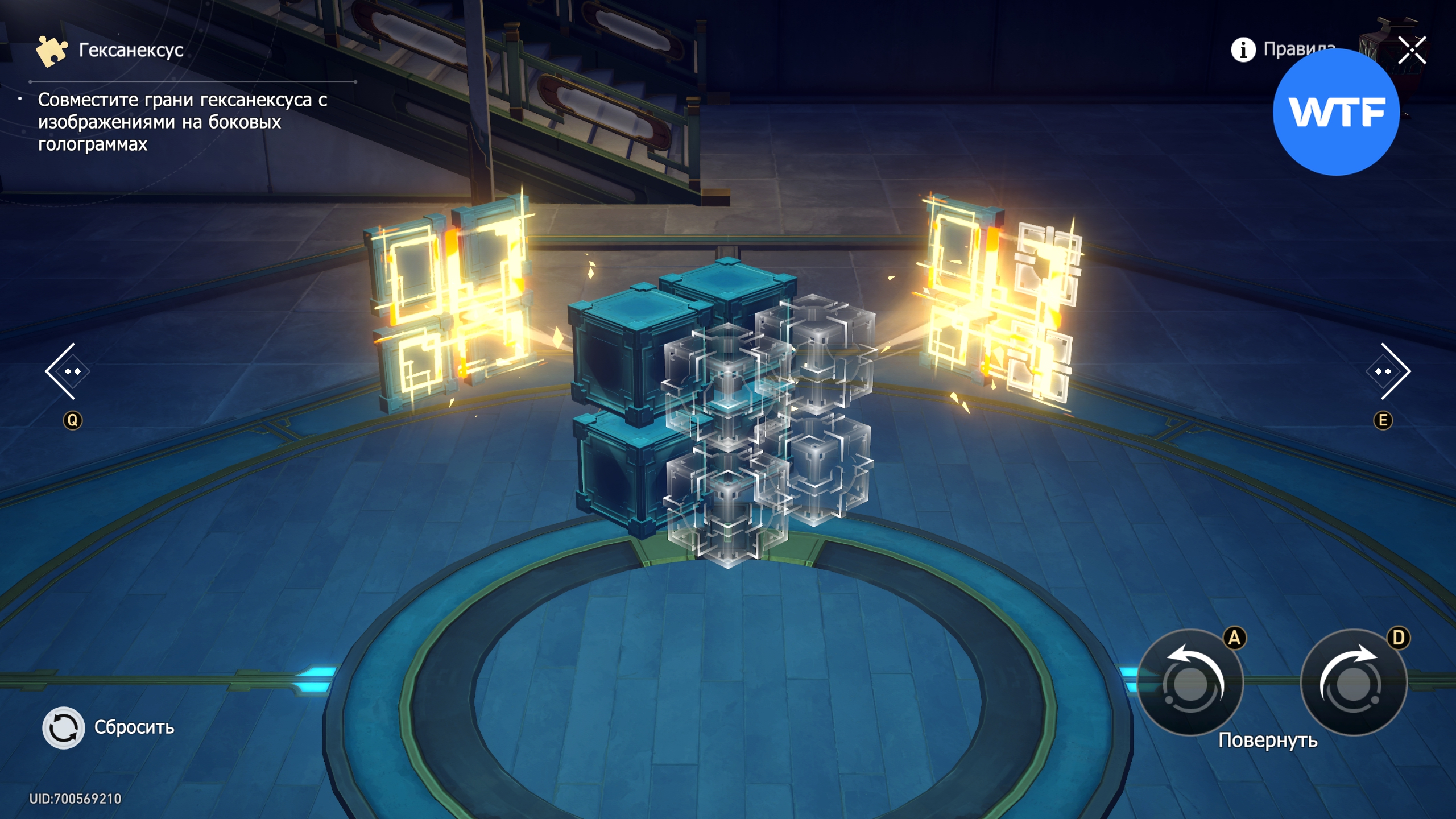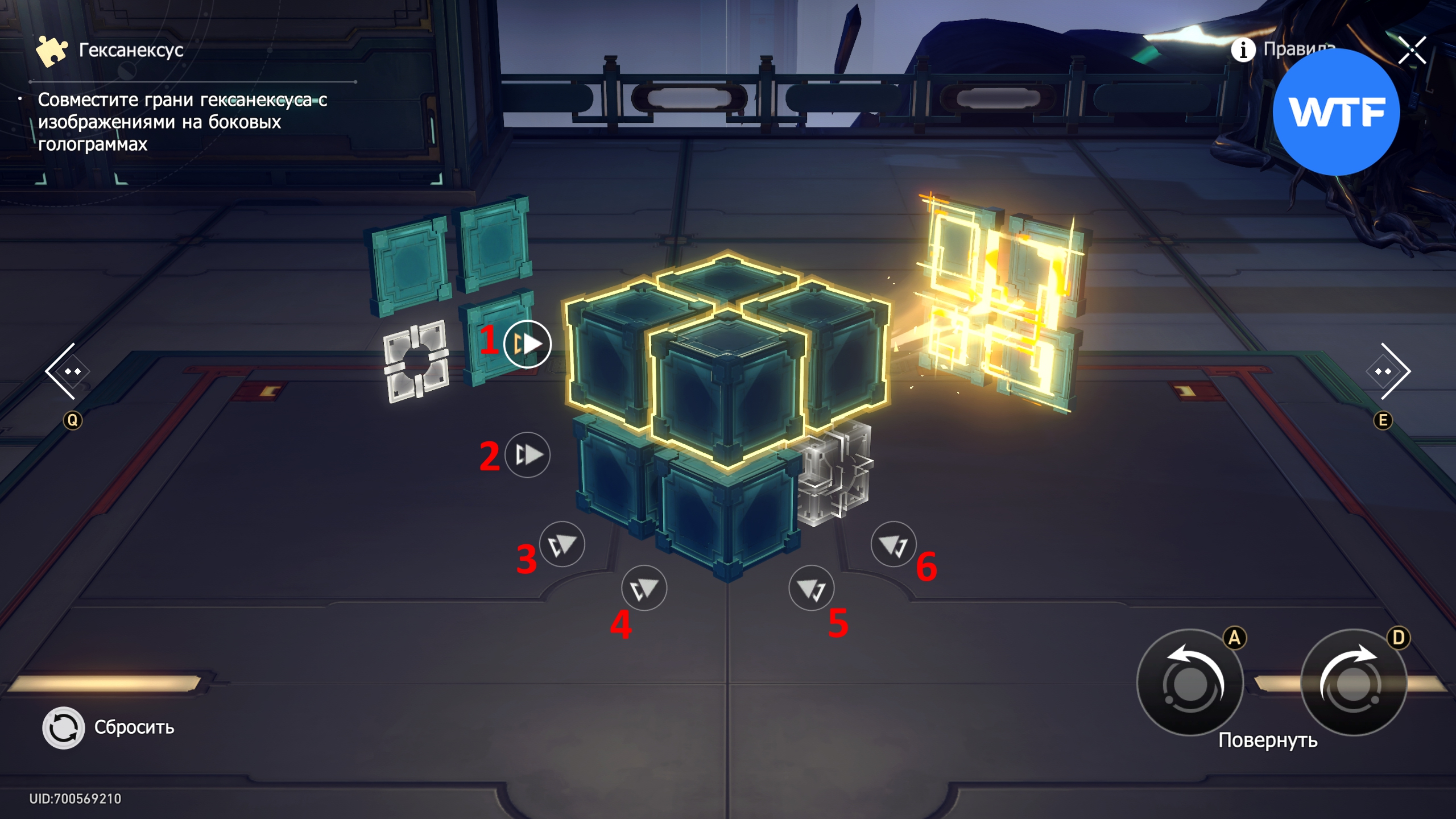 Чтобы его собрать и получить ценный сундук вам нужно передвигать кубики, выбирая кнопки ниже в следующем порядке (если нужно, сначала сбросьте все к исходному положению):