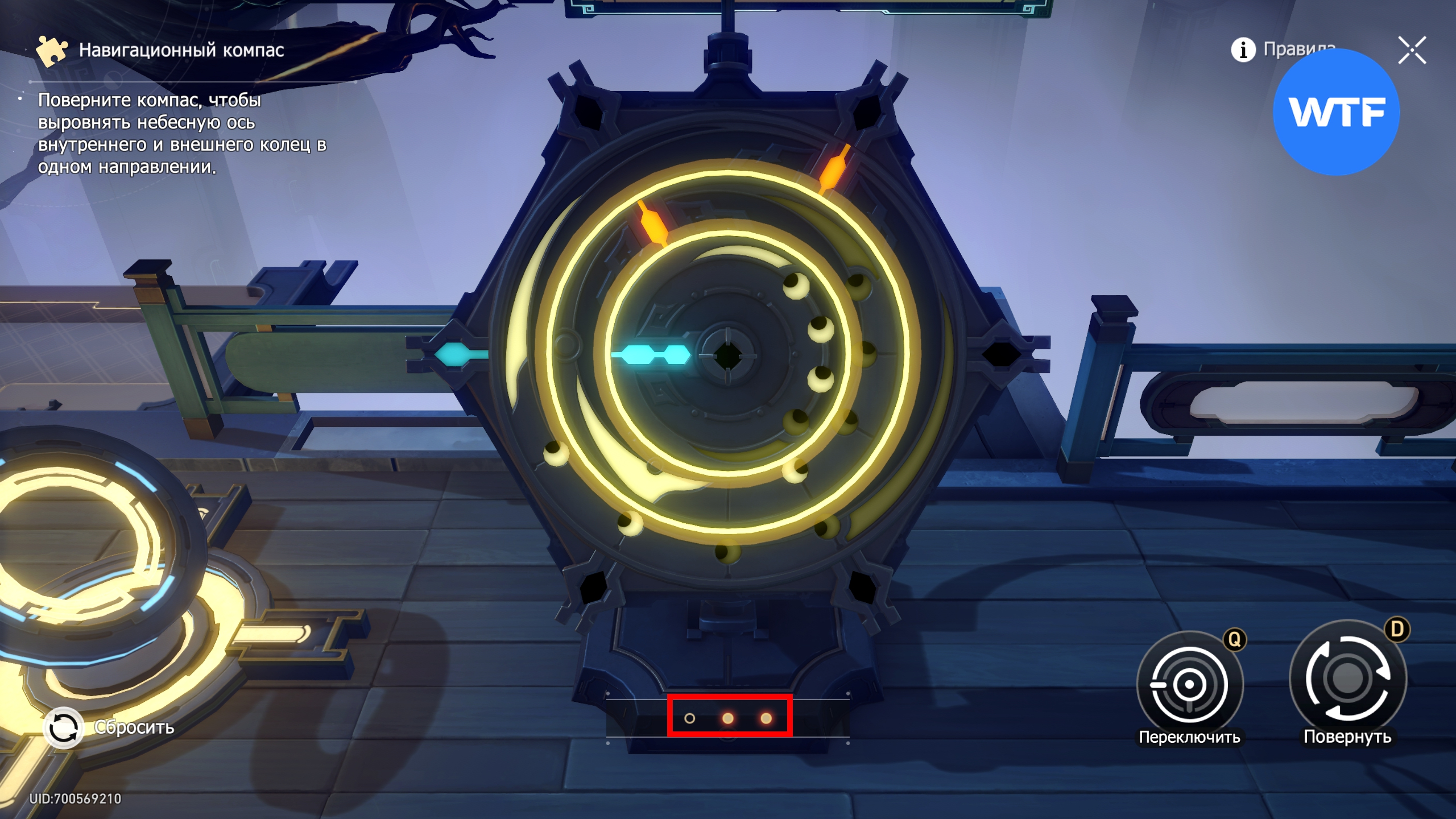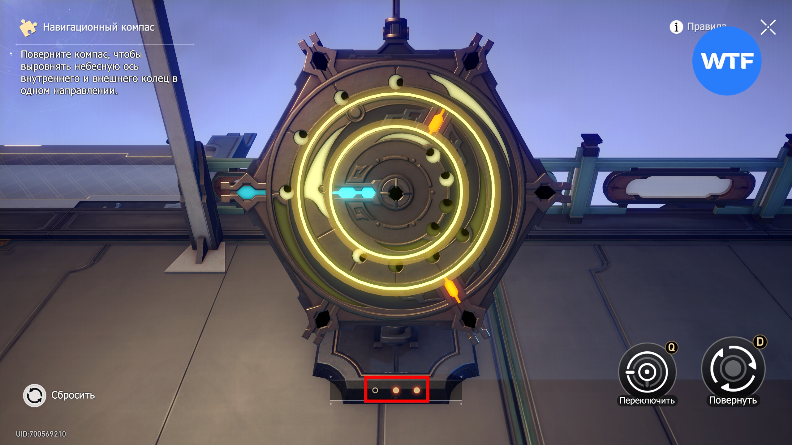 Воспользуйтесь точкой быстрого перемещения «Тайный причал» и от неё бегите к навигационному компасу на юге платформы. Обратите внимание, что сразу несколько колец здесь двигаются вместе. Чтобы пройти головоломку, переставляйте их в следующем порядке: