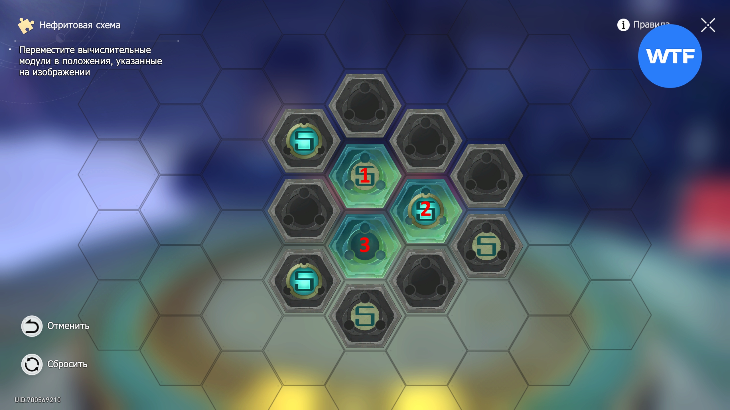Для этого придется решить головоломку с нефритовой схемой. Рекомендуем крутить детали в следующем порядке (если нужно, сначала сбросьте все к исходному состоянию):