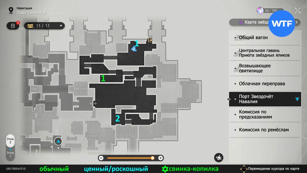 Как и предыдущая локация, Порт Звездочёт Навалия разделен на два уровня. Карты сундуков для каждого из них вы можете посмотреть ниже.
