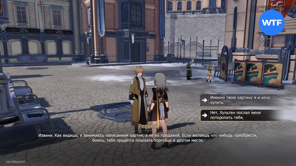 Вам нужно сразу выбирать вариант диалога «Нет, Хультен послал меня поторопить тебя». В этом случае вы заплатите за картину 10000 кредитов. Если выбрать первый вариант диалога, цена будет только расти.