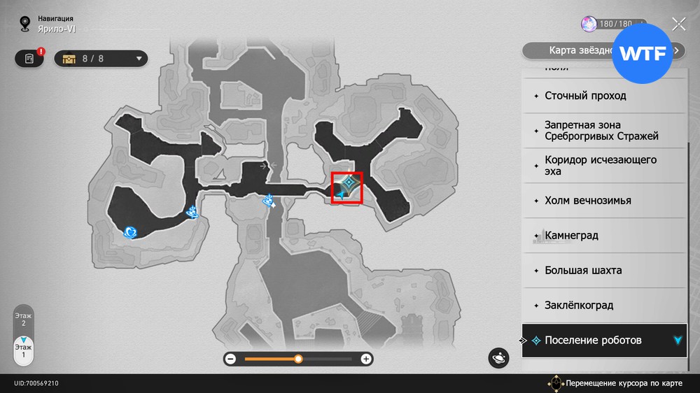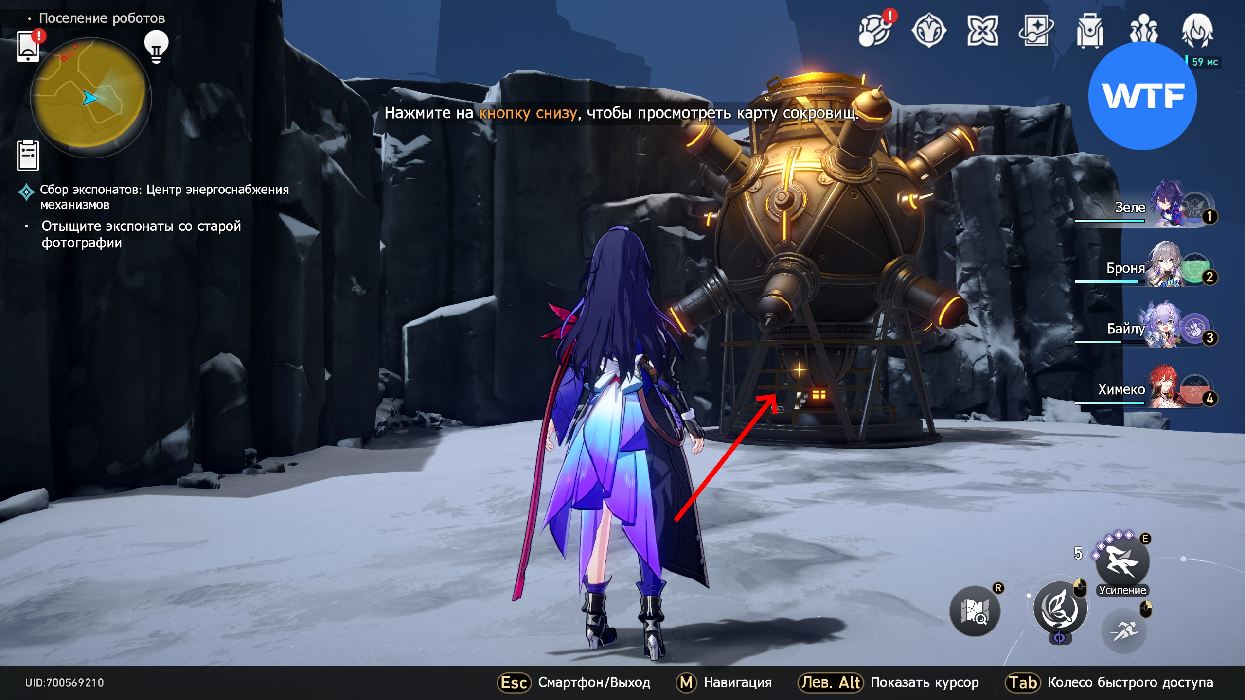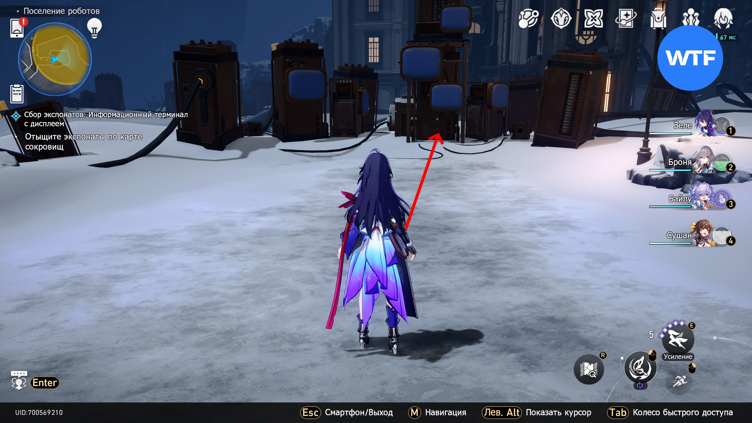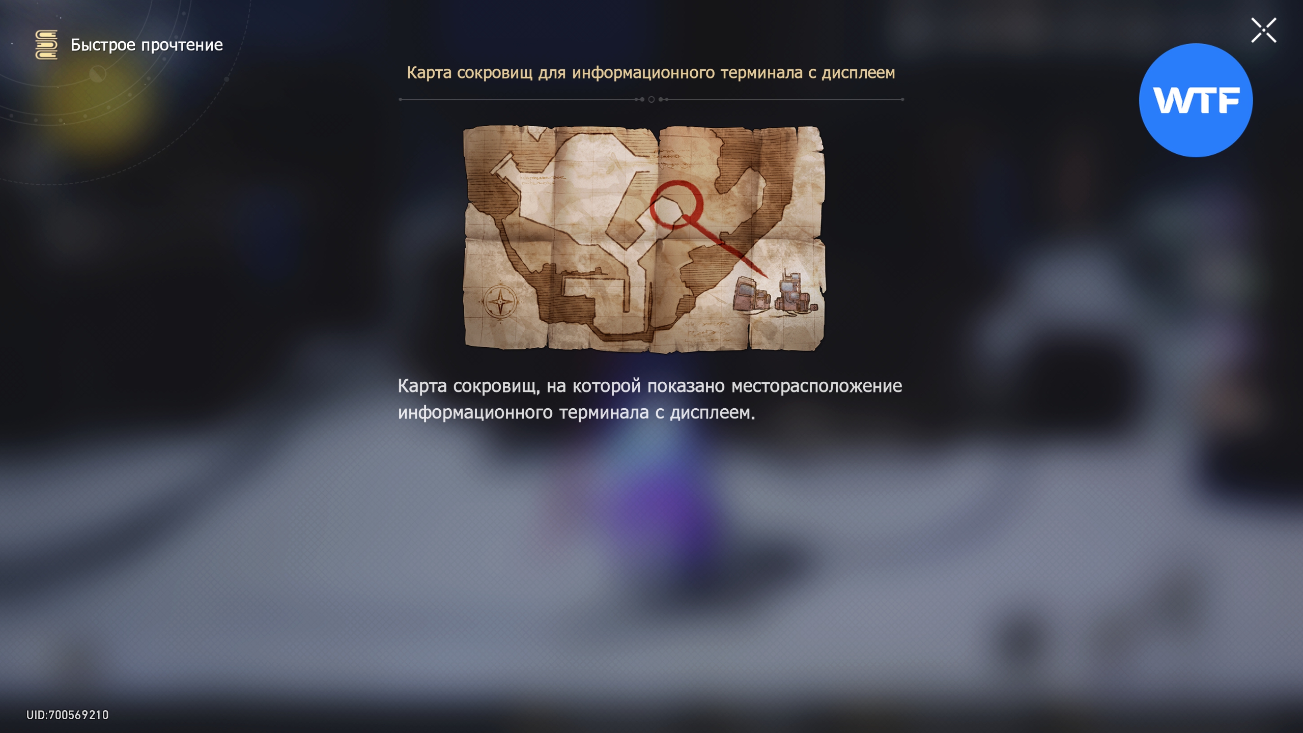Поговорите с Хультеном, чтобы получить от него потрепанную карту сокровищ, которая приведет вас к этому экспонату. После этого отправляйтесь в место, показанное на скриншоте ниже и взаимодействуйте с терминалом, подсвеченным звездочкой.