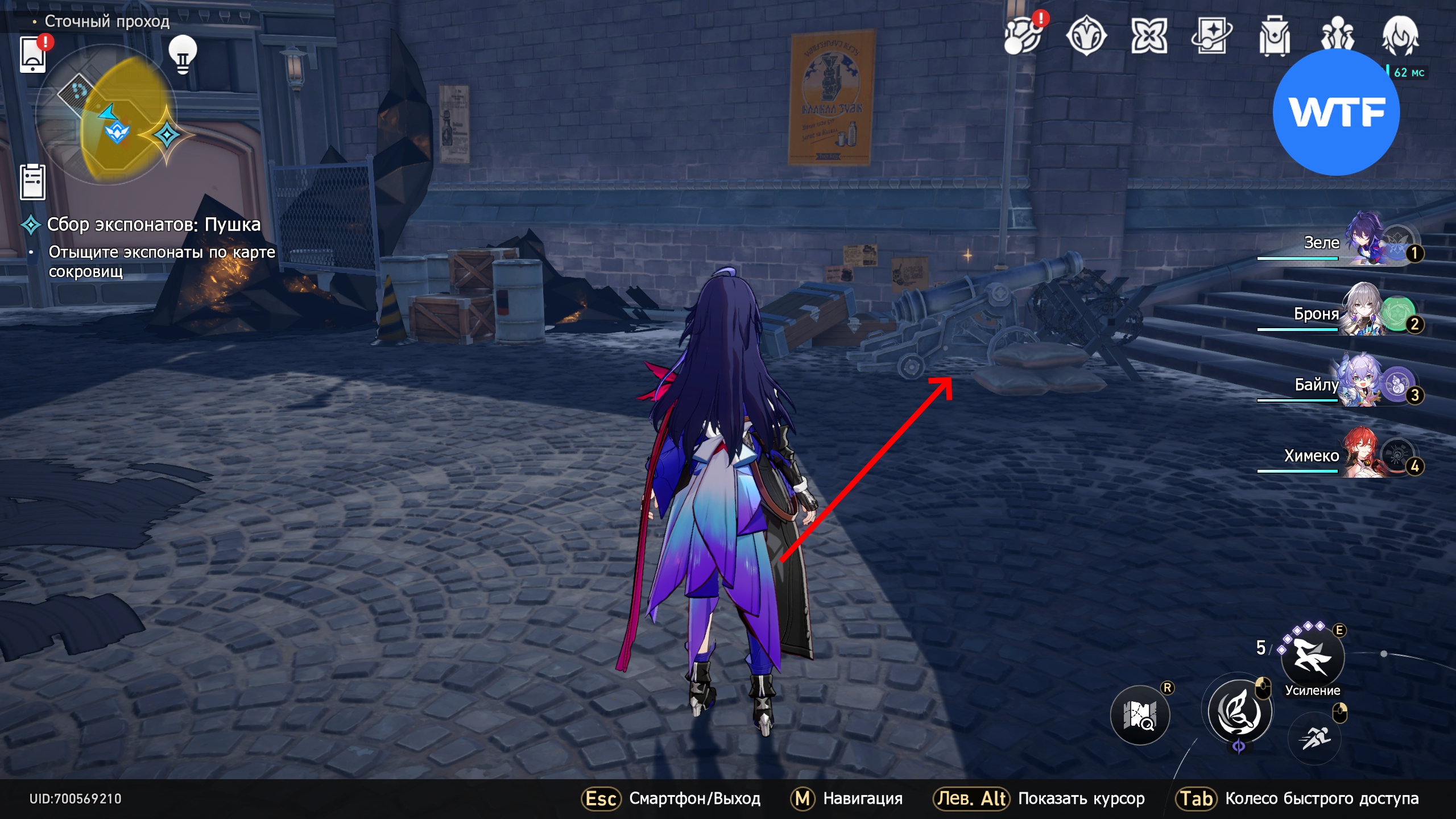 На первый взгляд, полученная вами карта совсем не соответствует реальной местности, однако отыскать по ней пушку все равно можно. Она стоит прямо у подножья лестницы за Застойной тенью: Форма миража. Нужный экспонат будет подсвечен звездочкой (см. скриншот 2).