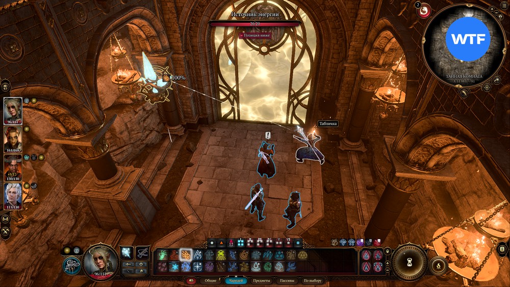 Внутри Тайной комнаты вам нужно отключить несколько барьеров, чтобы добраться до легендарной булавы Кровь Латандера. Для прохода через первую завесу, просто разломайте синий кристалл, который является источником энергии.