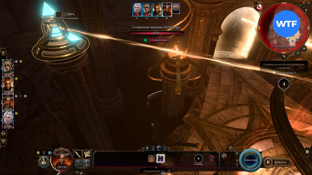 Второй вариант — уничтожить четыре Солнечные машины Латандера до тех пор, пока не кончится обратный отсчет. Имейте в виду, что достать их можно только дальнобойными атаками, а персонаж, который брал булаву, окажется заблокирован в центральном круге и не сможет помочь с уничтожением Солнечных машин.