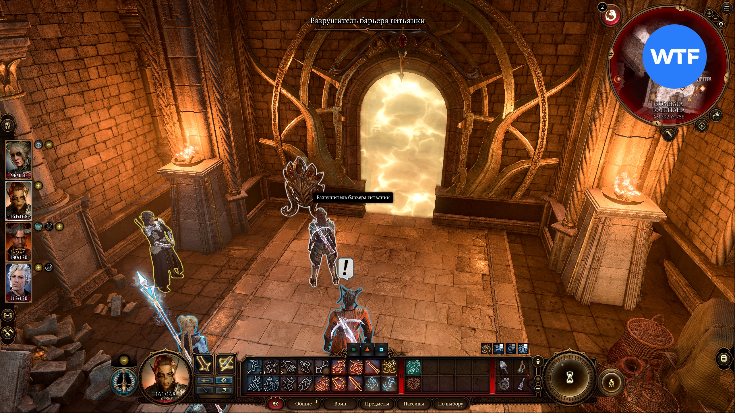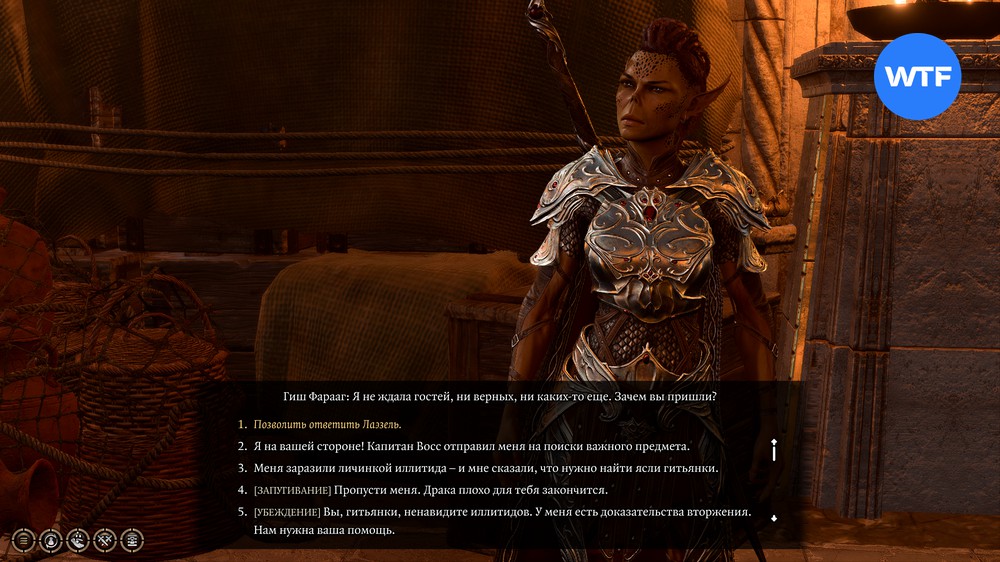 Внутри вас встретит целый отряд не очень дружелюбно настроенных гитьянок. Мы рекомендуем доверить разговор Лаэзель, чтобы пройти внутрь без боя и лишних конфликтов.