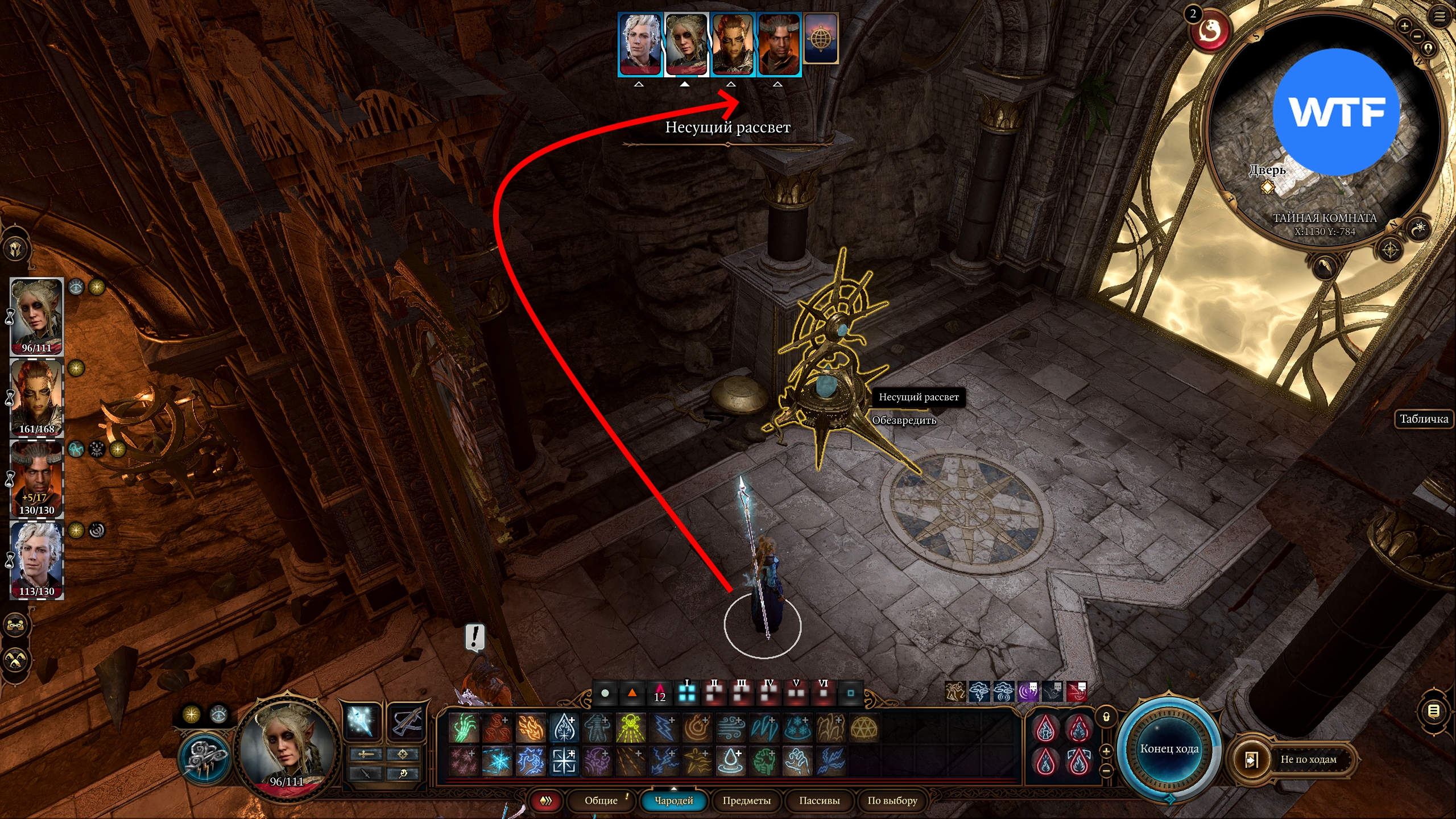 Важно! Если вставить гребень после активации механизма уничтожения и начала отсчета, то все NPC в Яслях станут враждебны. Так что сначала вставляем гребень, затем забираем булаву.