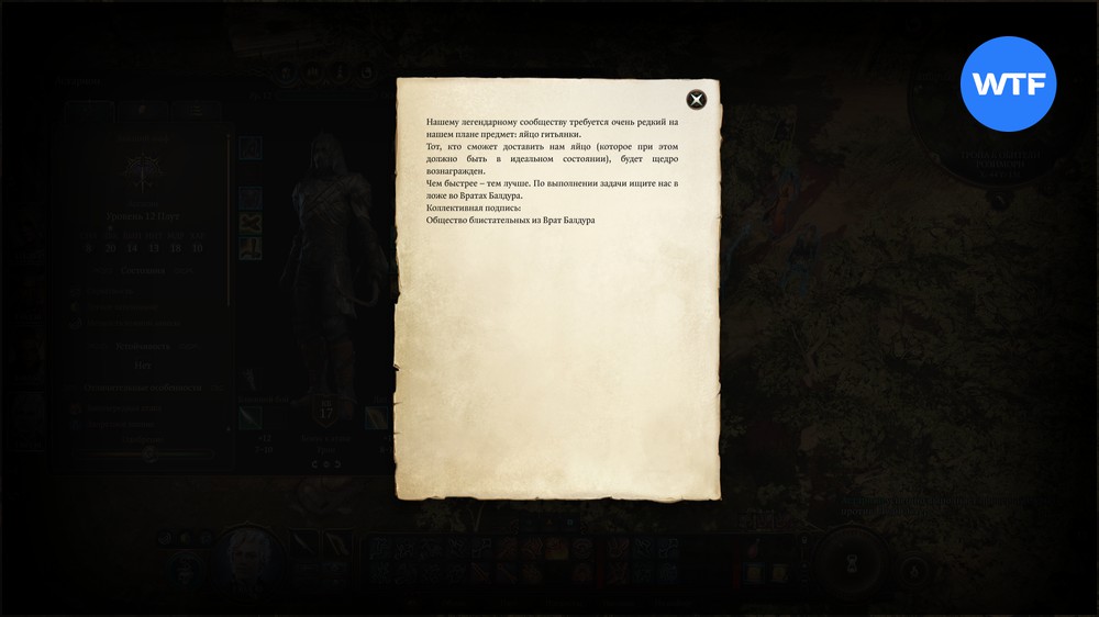 Это значит, что вы вполне можете взять предоплату с Леди Эстер, пройдя проверку убеждения, а затем притащить яйцо гитьянки во Врата Балдура самостоятельно.