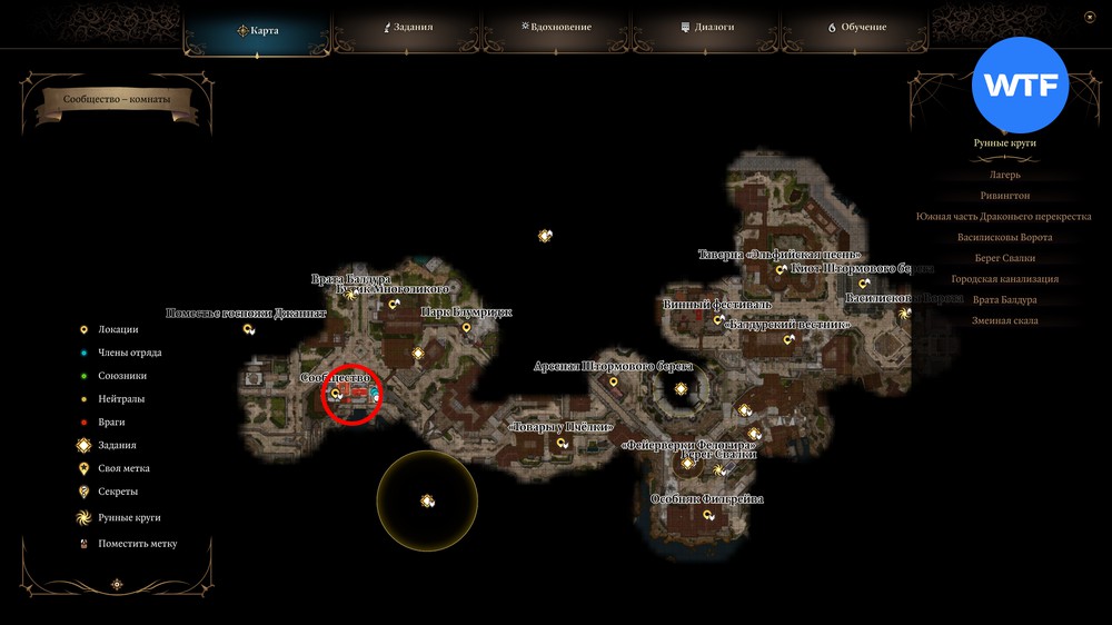 Найти Сообщество Блистательных в третьем акте можно в Нижнем городе, к югу от рунного камня «Врата Балдура». Отправляйтесь туда, чтобы узнать, чем закончится эта история в вашем прохождении.
