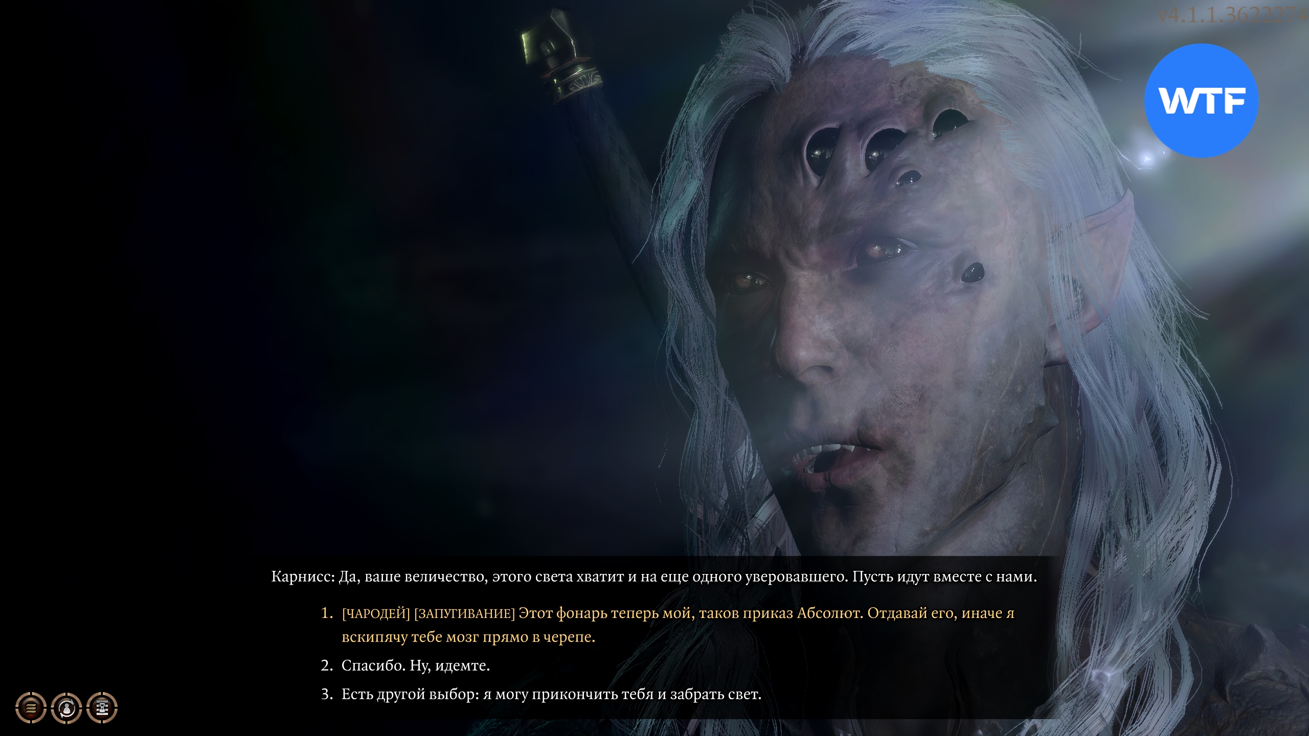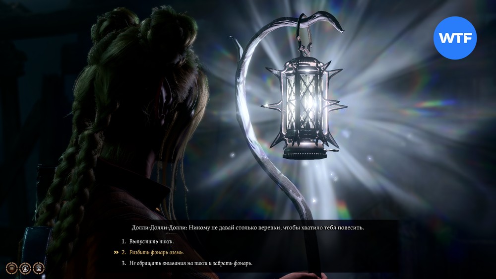 Забрав фонарь у Карнисса, вы сможете поговорить с пикси, которая живет внутри. По сути у вас будет несколько вариантов развития событий: