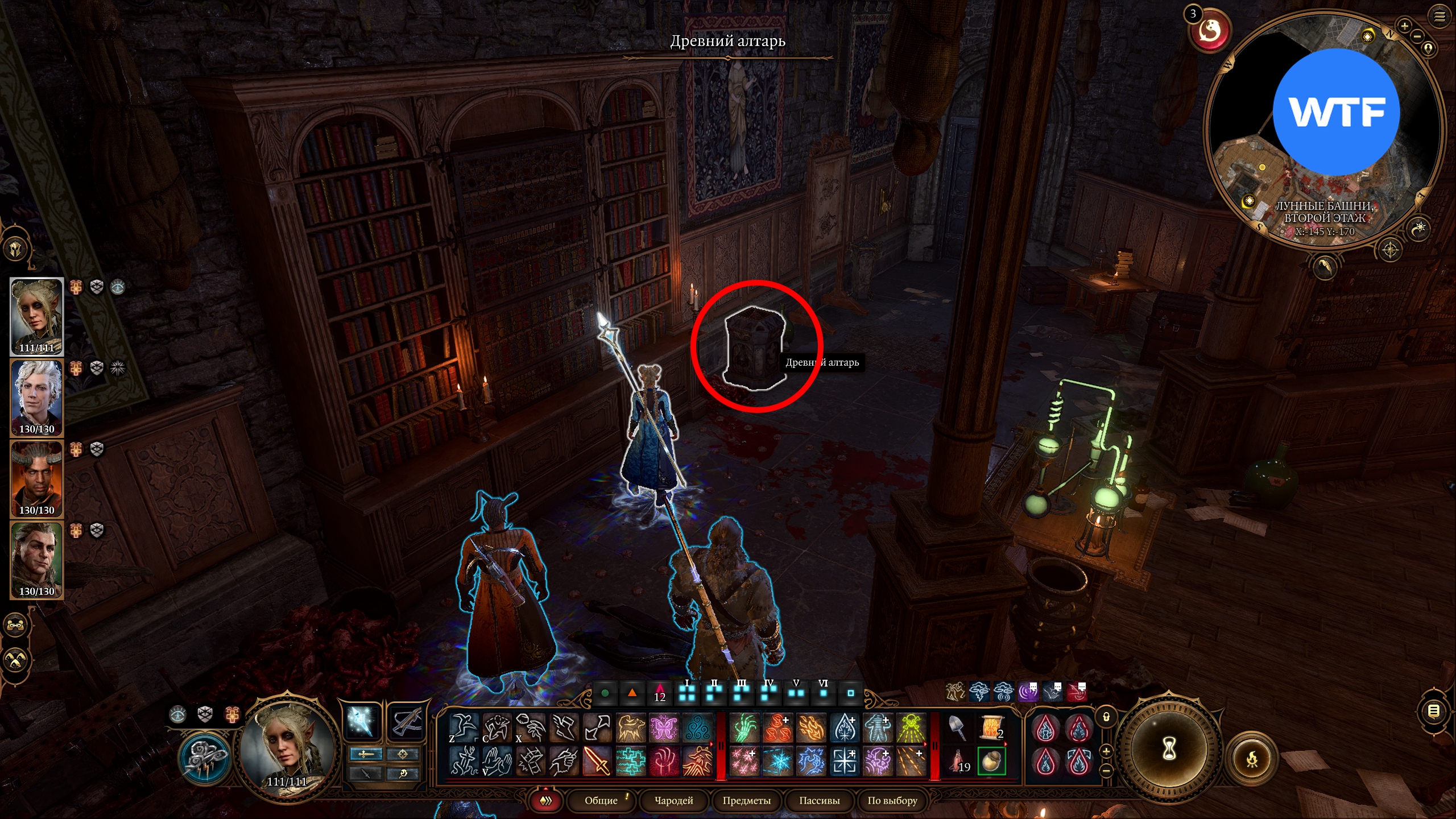Внутри вы найдете стол с ритуальным кругом, на котором делали лунные фонари. Из всего нашего отряда использовать этот круг смог только Гейл. У вас есть два варианта на выбор: