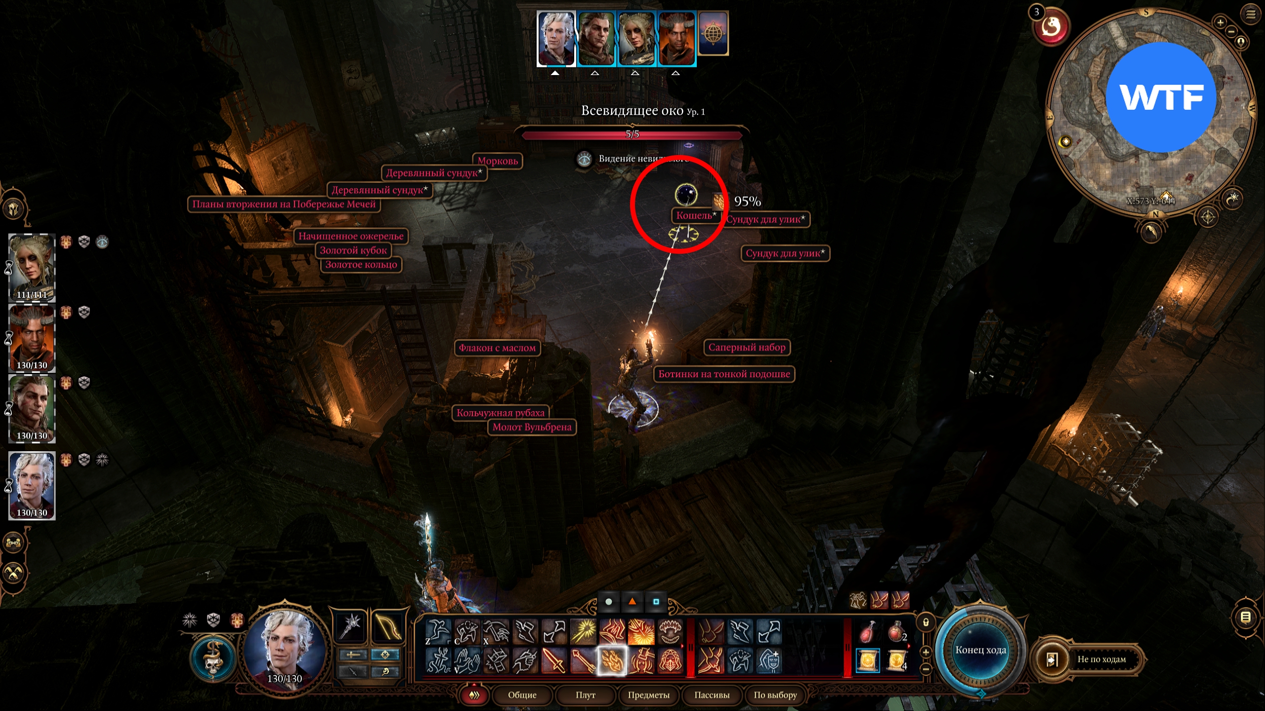 Вам нужно подойти к окну, перейти в походовый режим и незаметно разобраться с Всевидящим оком до того, как оно успеет поднять тревогу и позвать кого-то на помощь. После этого заберите со стола Молот Вульбрена, а также обыщите сундуки в поисках полезного лута.