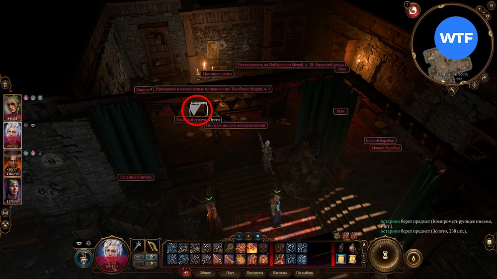 Вам нужно добраться до тяжелого сундука в дальней части подвала и пройти проверку со сложностью 20, чтобы его открыть. Внутри вы найдете Компрометирующее письмо, с которого и начнется задание «Исследовать подозрительные игрушки».
