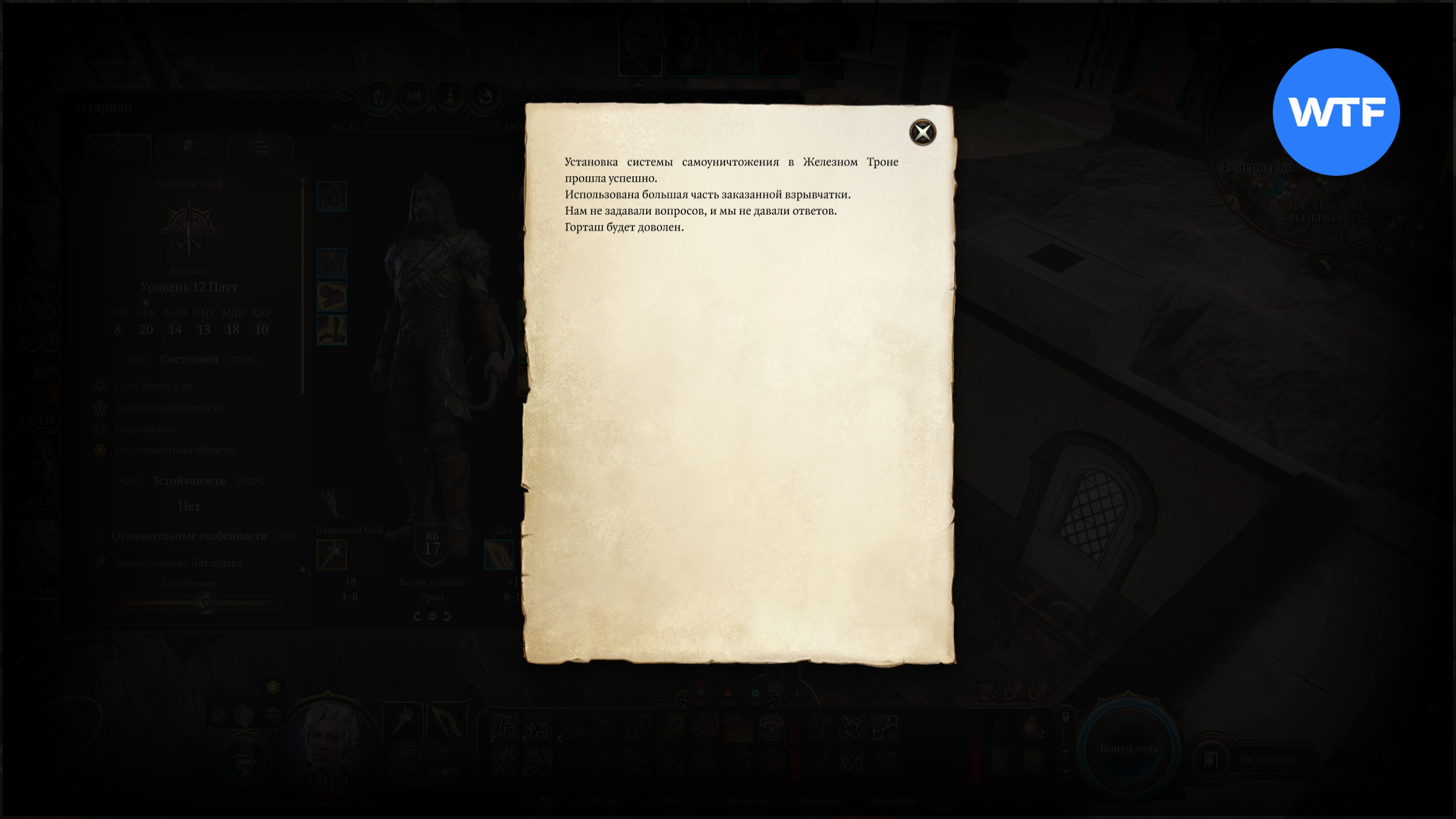 Ничего не дает и украденный у Томбольдта Бледного Отчет об установке, в котором говорится об установке системы самоуничтожения в Железном Троне. Журнал продолжает сообщать, что нужно найти другой способ попасть наверх.