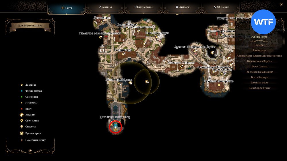 Дом Владычицы Вод находится в юго-западной части Нижнего города, к югу от рунного камня «Доки Серой бухты». Поговорите с Приливной Волной Алландрой Серой, чтобы узнать о смерти Холли.