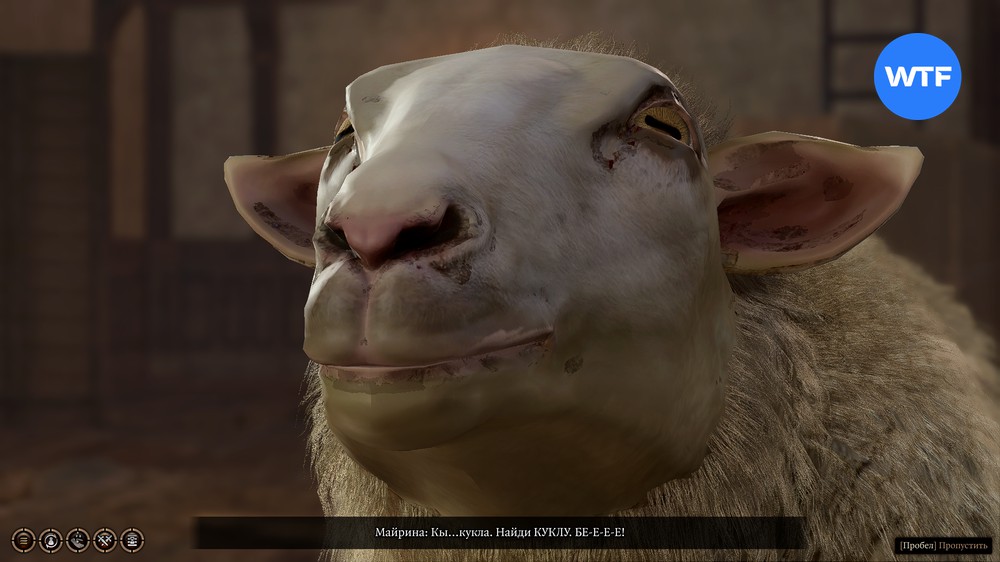 Поднявшись на второй этаж, вы найдете там Майрину, превратившуюся в овцу. Если использовать заклинание Разговор с животными, то она попросит вас найти куклу вуду, чтобы её расколдовать.