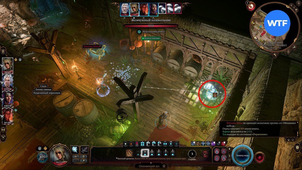 Кукла стоит в углу этой же комнаты и злобно хихикает. Однако схватить её не получится, при нанесении урона прилетать будет еще и Майрине. Поэтому мы просто применили на овцу заклинание Снятие проклятия, которое есть у Шэдоухарт, и этого оказалось достаточно.