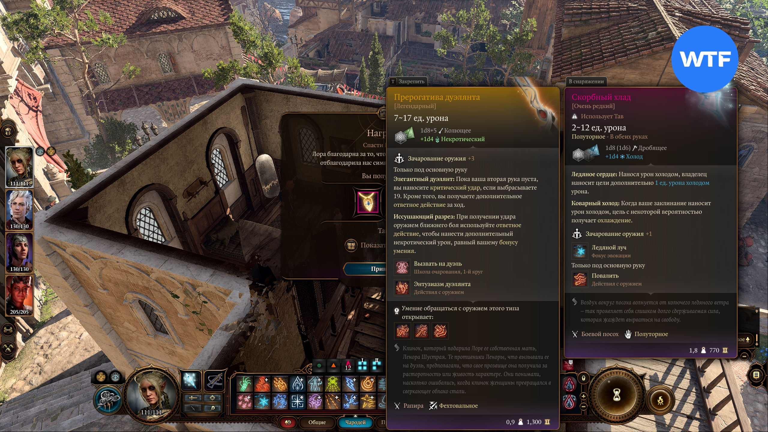 Но самую ценную награду за спасение дочери вам выдаст Лора. От неё вы получите очень редкий Амулет всадника ветра с заклинаниями «Верхом на ветре» и «Порыв ветра», а также легендарную рапиру Прерогатива дуэлянта со следующими бонусами:
