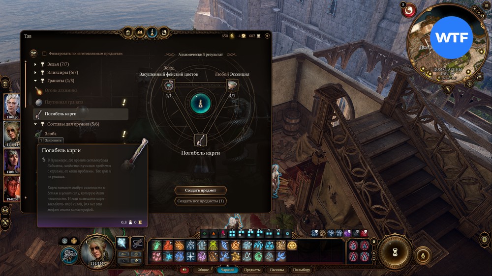 Для приготовления Погибели карги вам понадобится Засушенный фейский цветок, который лежал в этом же сейфе, а также любая эссенция. Новый рецепт находится в разделе гранат. Обязательно изготовьте его прежде, чем отправляться в Логово карги.