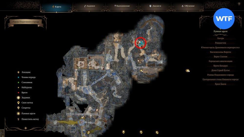 В целом, в нужную локацию вы в любом случае отправитесь по сюжету, когда соберетесь в гости к Орин за её нетерийским камнем. Начало маршрута находится в канализации, к востоку от рунного камня «Руины подземного города».